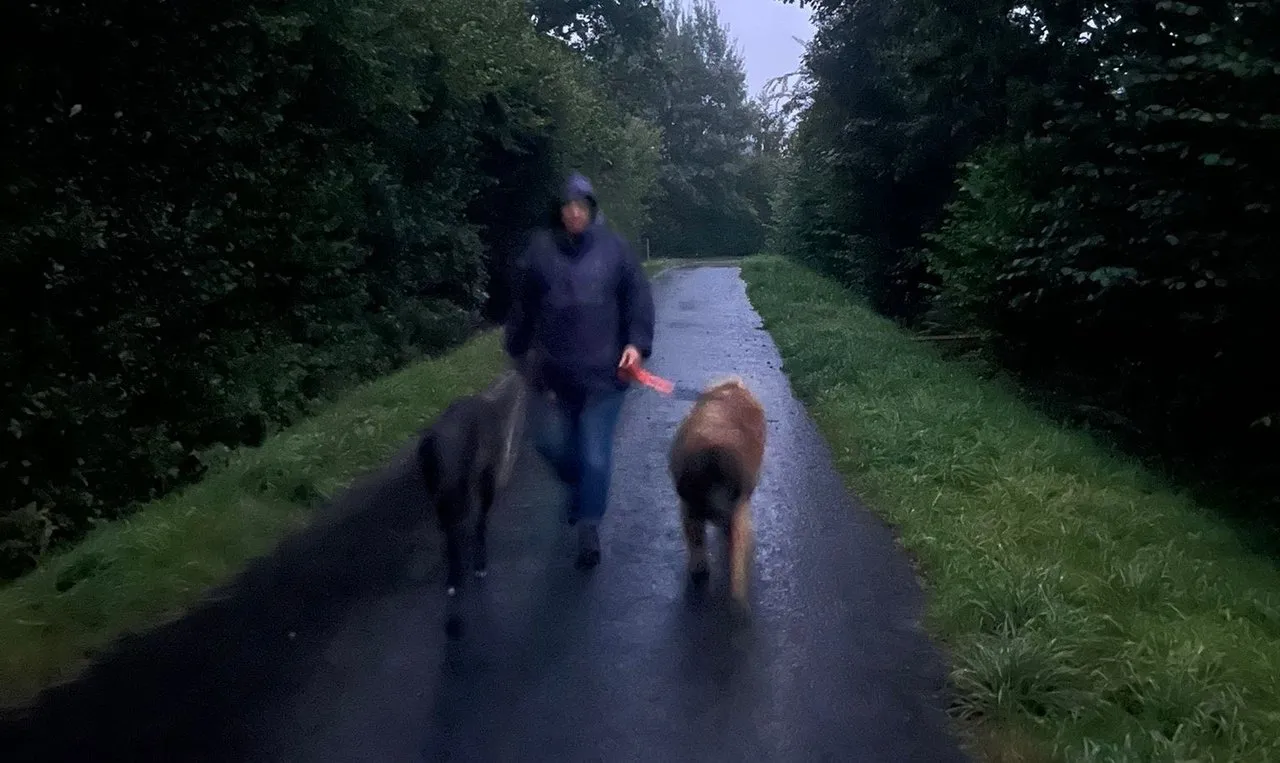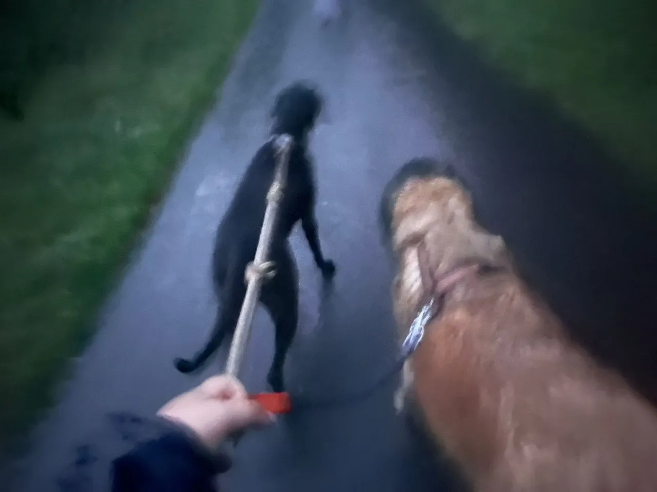 So we started to walk with dry weather, we had already been outside for some distance when pouring rain came back. Good lord, we (me and my dog) had to talk that sensitive thing home meter by meter!!