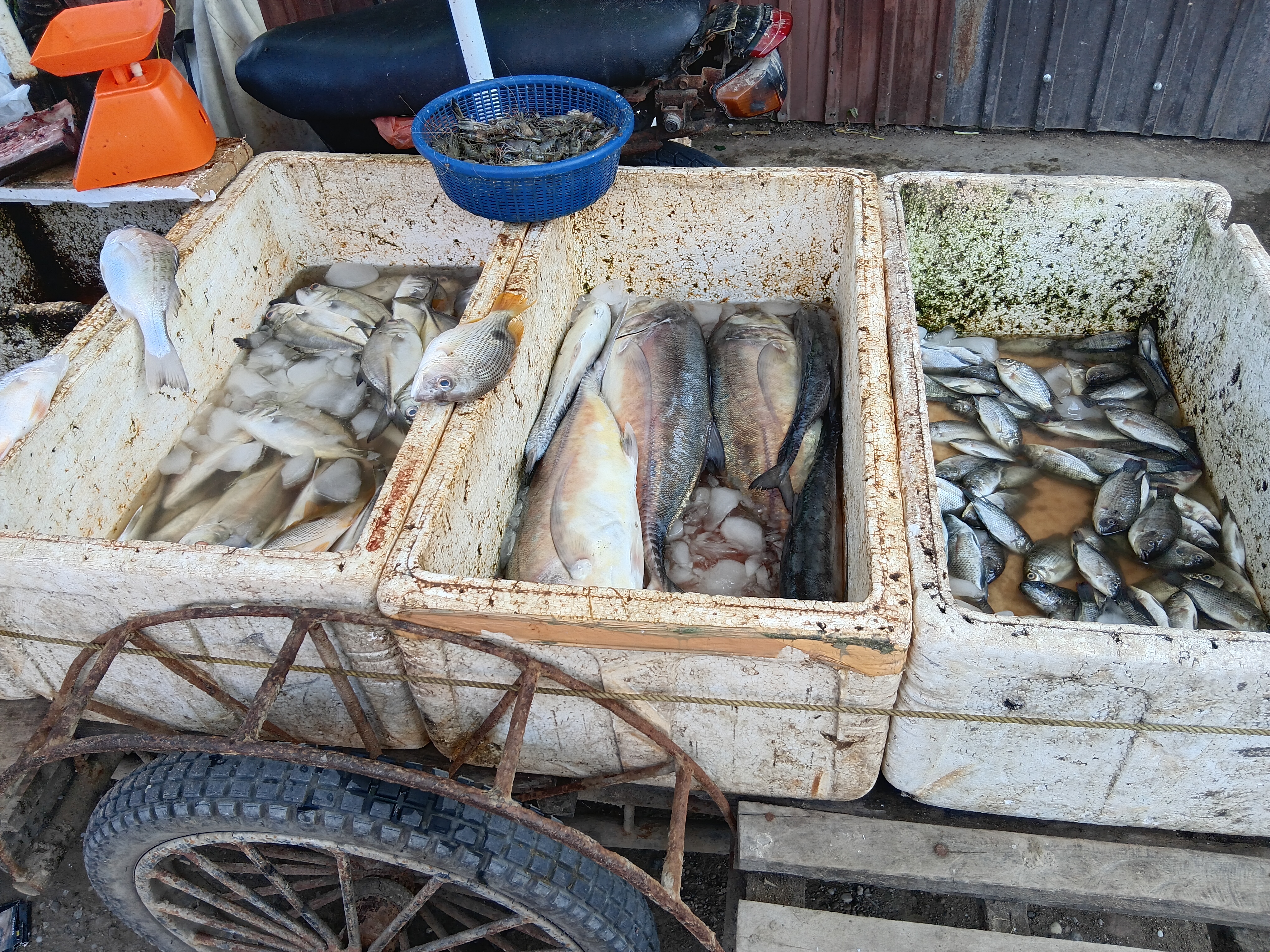 Buyers could choose the fish they wanted by looking at them or picking them up from the boxes themselves. These fish sellers used this method to make their work easier. They could take the fish home when there were no more buyers, and the remaining fish could be taken elsewhere to resell.