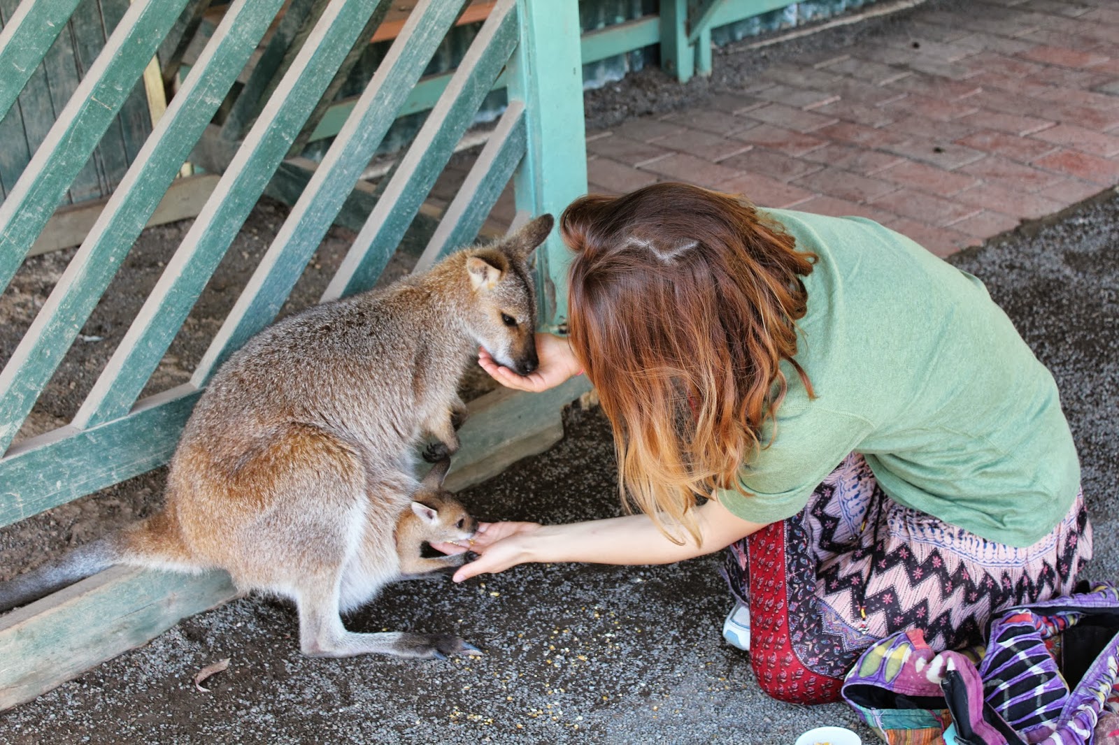 With that, you've probably noticed here are some pictures of my trip; these are pictures that I haven't uploaded due to slow service. Most are from the zoo, and another from our trip to lighthouse beach. Both were taken weeks apart, yet somehow, I wore the same skirt in both pictures (wow, kind of embarrassing). And funny thing is, I am wearing the same skirt right now as I type this. Can you tell I wear the same thing I love a lot? What's worse is that I did not have my sim card for my camera, so these are all taken by my Australian friends -- and mostly, these are the only picture I have. I think I have bad luck with camera's. My blue Holga 35mm camera, that I thought was so vintage, never worked for me. Something bad always happened. Firstly, it was the only picture I took on my family trip to west Virginia -- 98% of the film wasn't properly taken and did not develop. Then the 5 pictures I did have, I forgot them at my Mom's house. Then to Australia, it was the only camera I had, that worked -- exposed the film on one round, and the next -- it broke. No, literally it broke. I left it with a wonderful New Zealand artist, whom hopefully will have better luck then I have. But Luckily I do have some pictures. And most of them are with my new favorite animal in the world. The wallabies, which is a smaller version of a kangaroo. They are the cutest things ever. I just wanted to stick one in my pocket and take it home. Seriously. When William saw it, he said "Maybe we could get them as our next pet, Amy's friend has one". He said that, dead serious. Or something close to that.