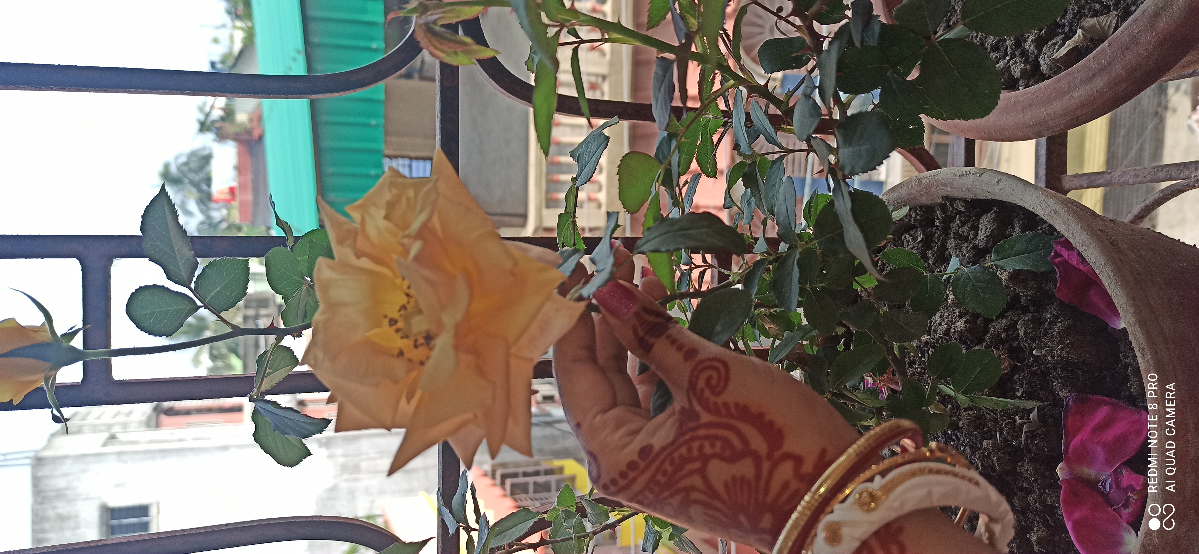 দিদি তুমি তো হাতে খুব সুন্দর করে মেহেন্দি করেছো 🥰🥰 হাতে মেহেন্দি করতে আমি নিজেও খুবই ভালোবাসি । তোমার কাছ থেকে আমি একবার মেহেন্দি করবো অবশ্যই। আর আমি নিজেও কতটা ফুল পছন্দ করি সেটা তো তুমি জানো। সত্যি বলতে ফুলগুলো যখন ফুটতে থাকে গাছে অদ্ভুত এক ভালো লাগা কাজ করে ভেতরে। মনটা খুশি হয়ে যায় 😊।