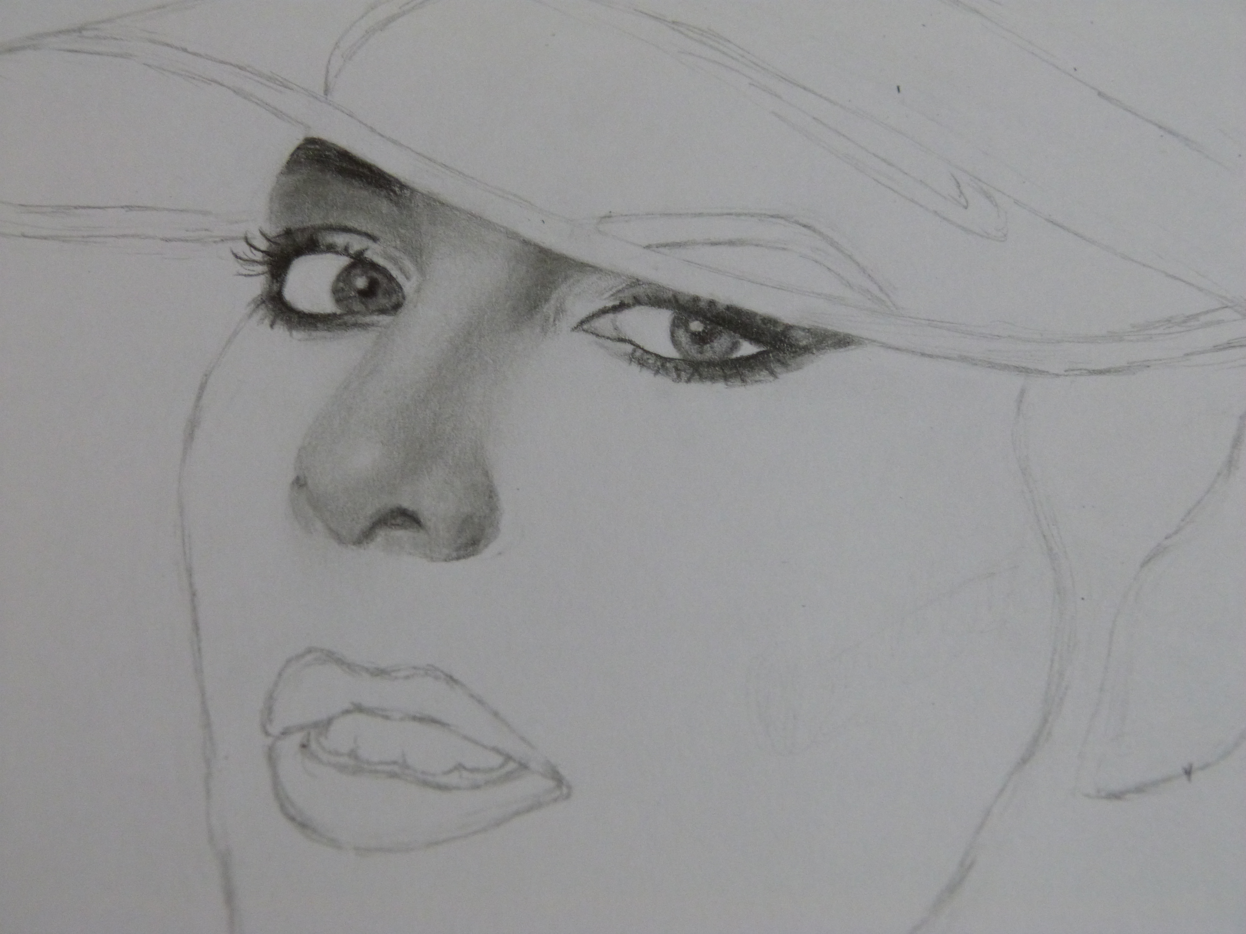 Y así va quedando el dibujo, todos los artistas tienen una forma de dibujar, la mía es iniciar desde los ojos para luego ir expandiéndose por el resto de las facciones del rostro.