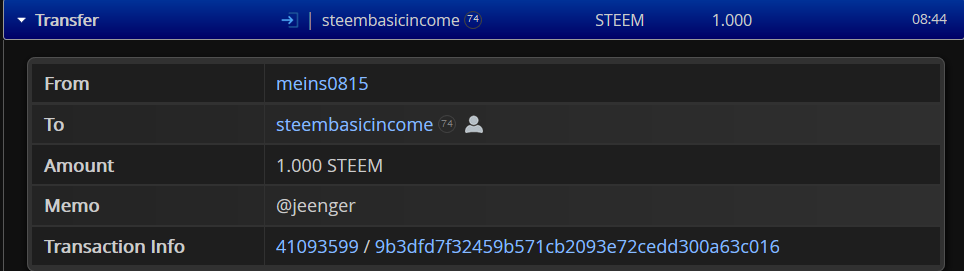 geht an: @jeenger 1Steem