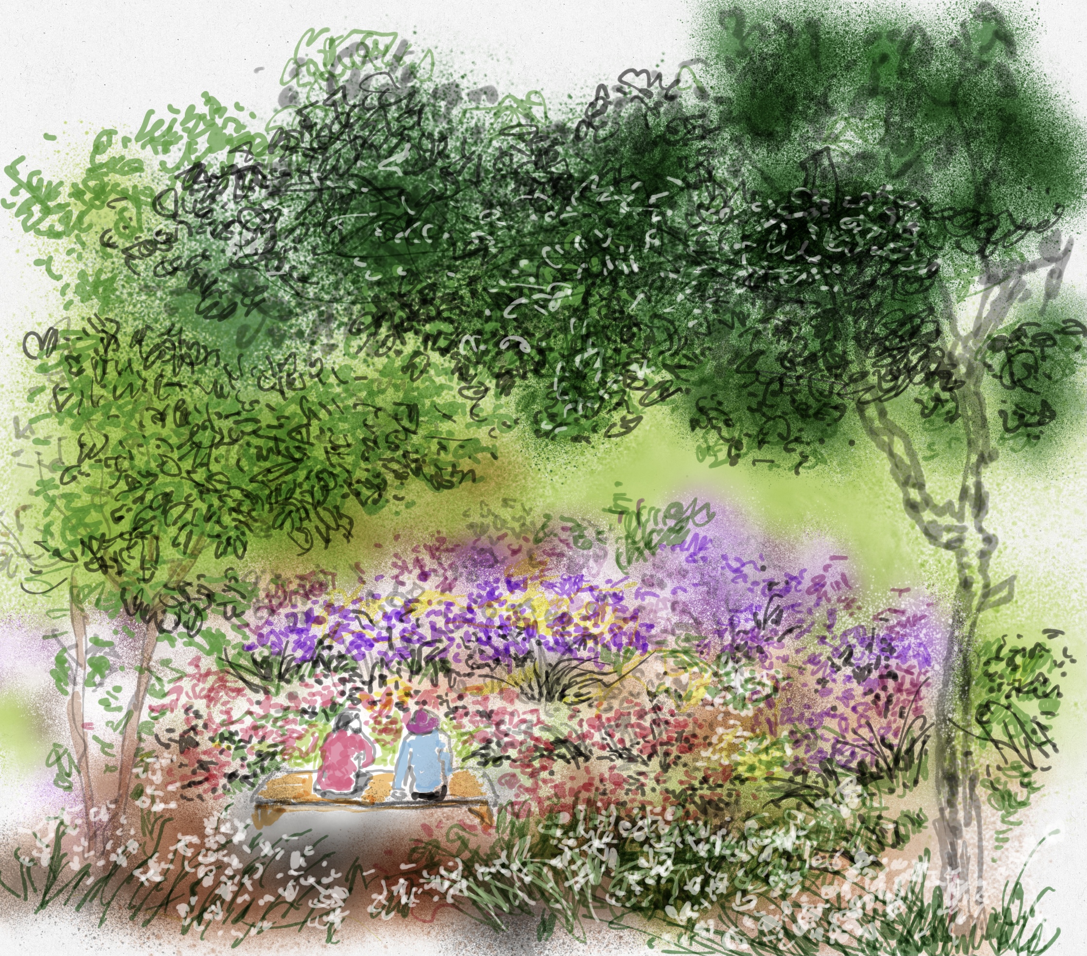 꽃밭에서veronicalee (86)in #digital • 5 years ago 꽃 밭 에 앉아서 꽃잎을 보네, 가요의 한소절이 생각나 꽃 향기 맡으며 다정 하게 친구와 담소 하는 정겨운 모습. 그립네요. #painting #mini #steemit #photography #art