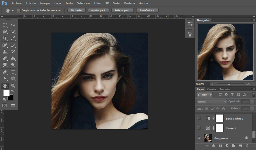 "Greetings from new friends", I want to show you my new work in Photoshop, it is a "double exposure in diagonal effect".And I wanted to share it as much as my image as the process that I'll leave next in a GIF file.