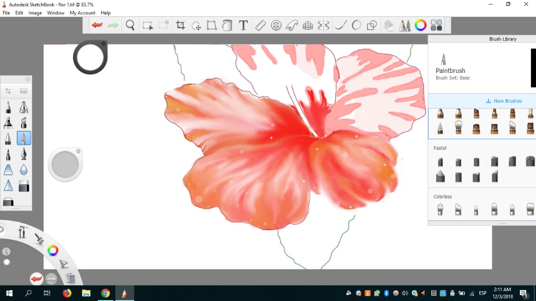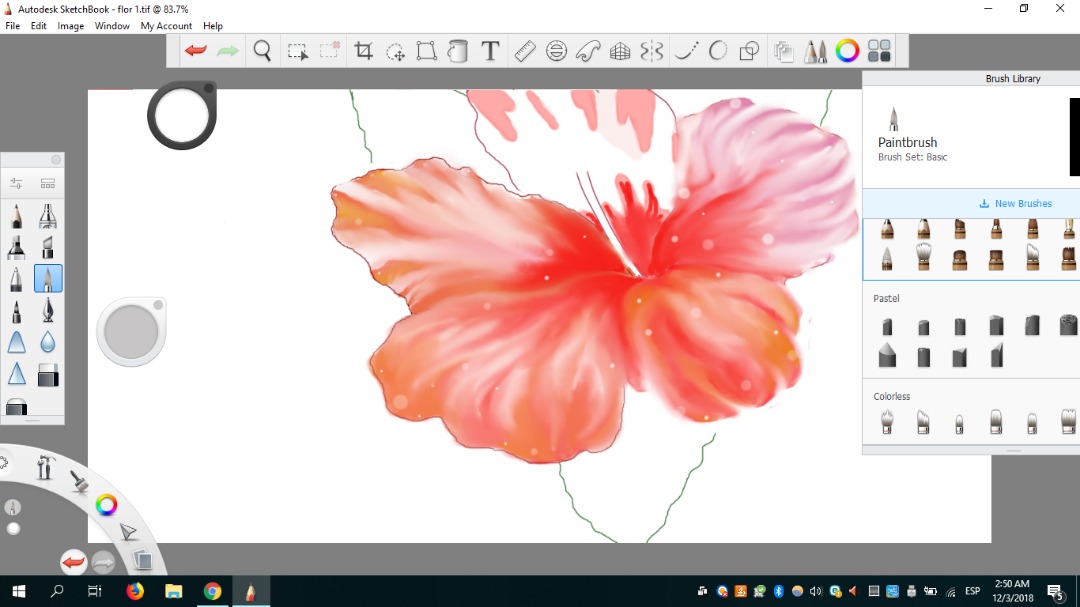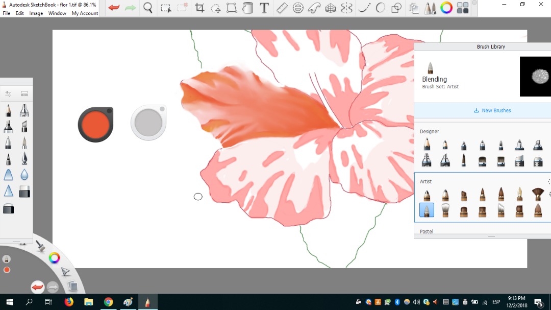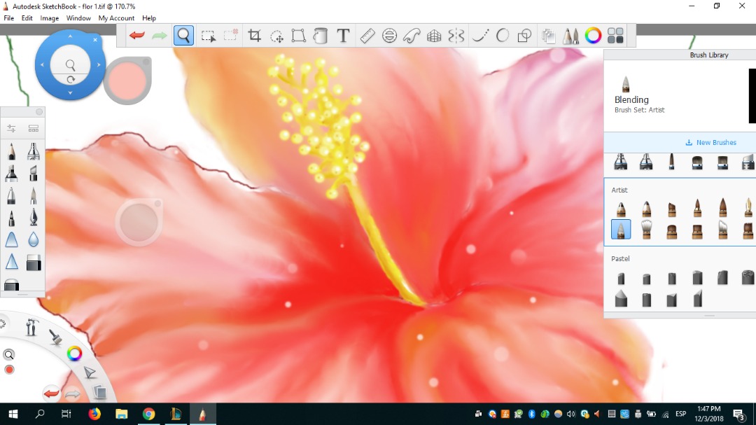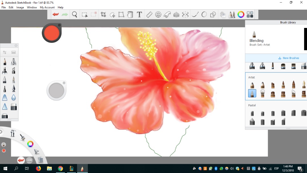 Mi pincel favorito fue definitivamente Blending porque podía difuminar y al mismo tiempo darle un aspecto de movimiento a cada pétalo. Como si cada uno fuese en una dirección diferente. Me gustó mucho eso.