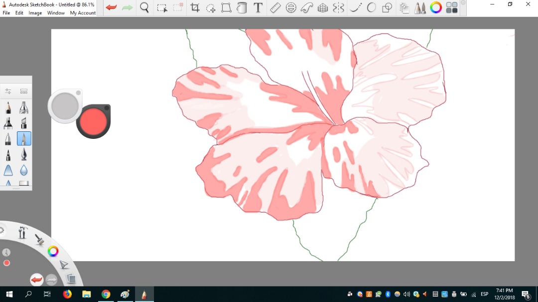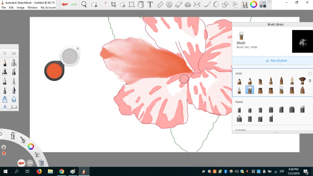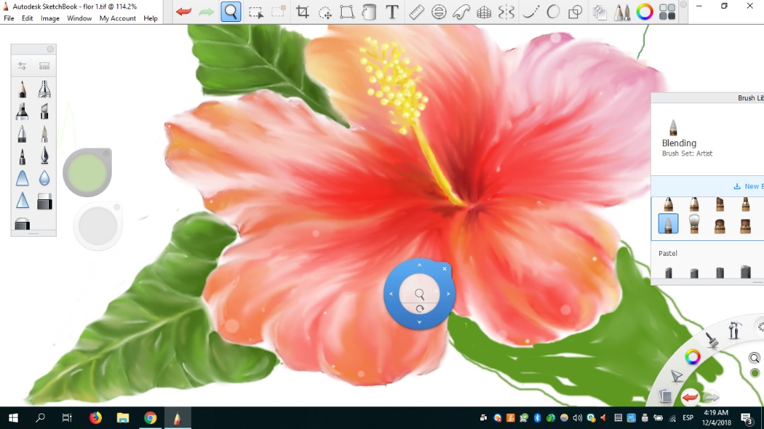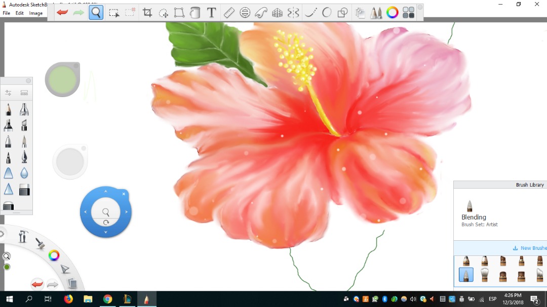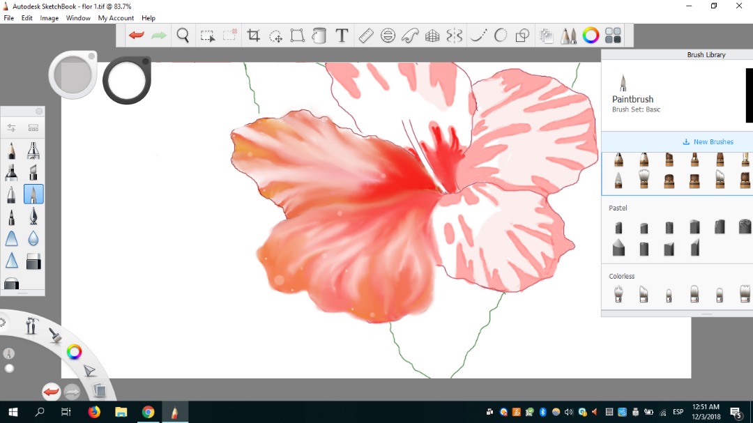 Mi pincel favorito fue definitivamente Blending porque podía difuminar y al mismo tiempo darle un aspecto de movimiento a cada pétalo. Como si cada uno fuese en una dirección diferente. Me gustó mucho eso.
