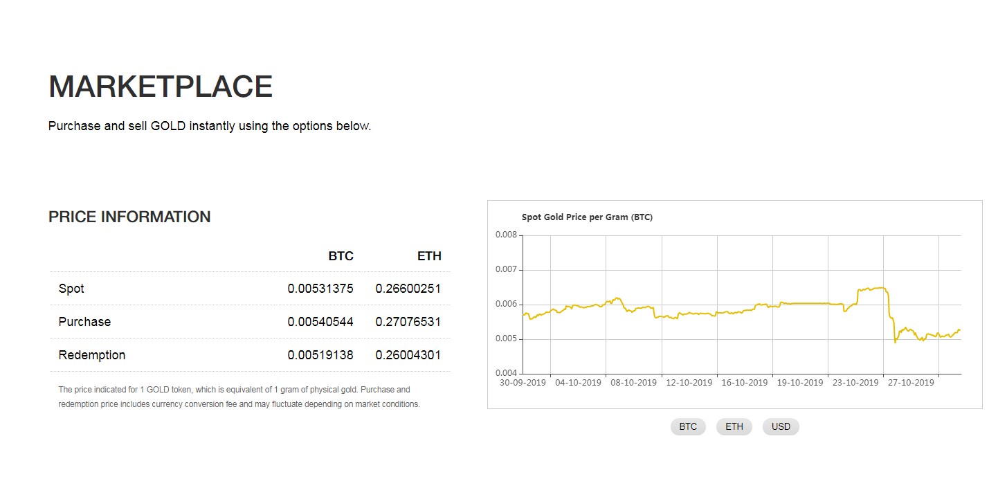 The holder of the Gold token can instantly purchase or redeem tokens on the website or through partner exchanges.