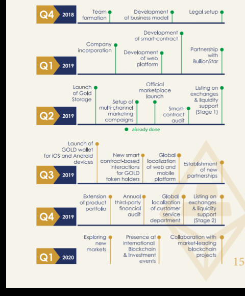 The Gold token choose to operate on the ethereum based blockchain cause of the automatic records, security funds, instant transactions, immutability and smart contract functionality which ensure that the number of GOLD tokens in circulation is equal to the amount of real physical golds in the network vault. The Ethereum blockchain is consider to be transparent, secure, solid and bug free with its open source code eliminating all centralized entity in accessing tokens in circulation. The GOLD token can be stored on ethereum-compatible wallets which includes; Trezor, Guarda, MetaMask, Ledger Nano S and MyEtherWallet.