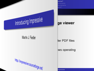 Impressive permite realizar una presentación a partir de cualquier documento pdf, añadiendo efectos de transición, vistas de miniaturas, sonidos, etc. Antes de junio de 2008 este programa se llamaba KeyJNote, pero a raíz de exigencias de Apple el autor tuvo que cambiar el nombre del programa.