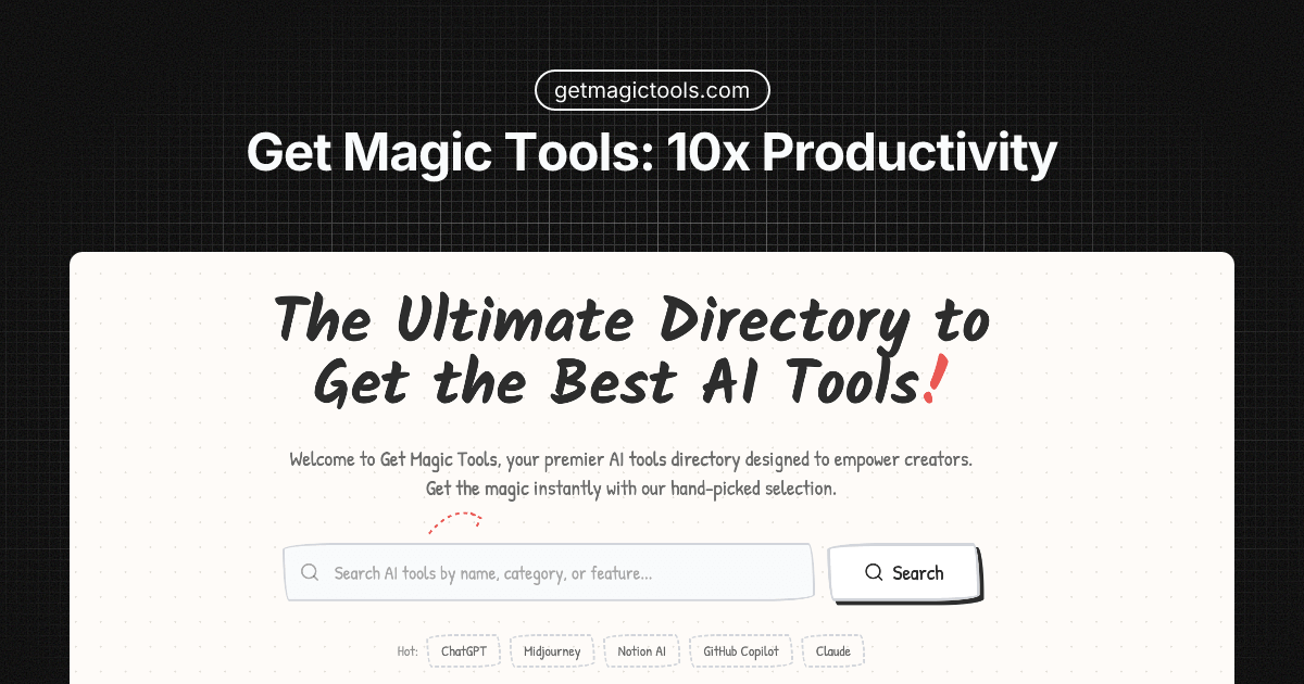 Stop wasting time on manual tasks or searching for the right software. Get Magic Tools connects you with the web's most powerful utilities, SaaS, and productivity apps. Whether it's cutting-edge AI, essential developer tools, or creative assets, our curated directory helps you find the "magic" solutions that solve real problems instantly. Build faster, design better, and work smarter.