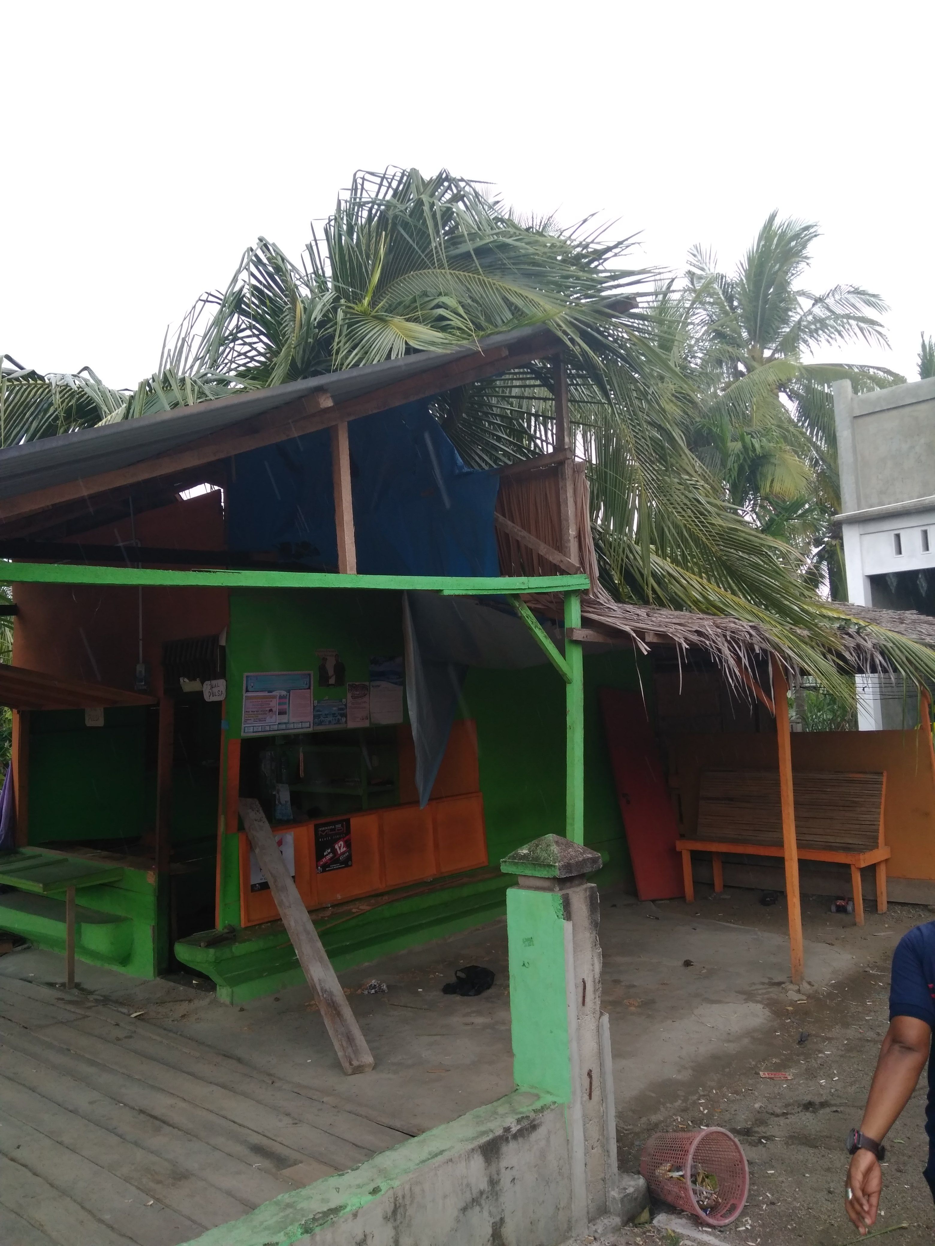 Satu toko kecil milik Ibrahim yang dijadikan sebagai tempat usaha menjual barang rempah-rempah tertimpa pohon kelapa dan mengakibatkan atap toko rusak parah.