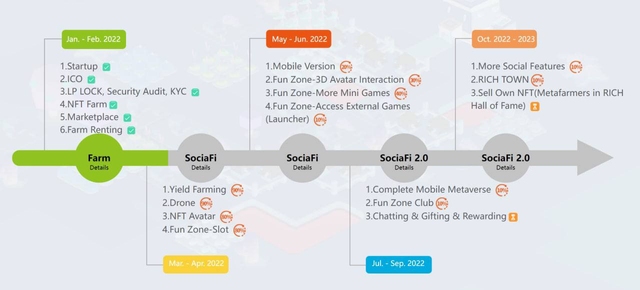MyRichFarm draws a clear and powerful roadmap, aiming to build a non-conventional RICH Metaverse. Players around the world can create, enjoy and monetize their own game experiences in this virtual game world. Meanwhile, all players will be part of the spread of the leading technology of blockchain games and leave their mark on its development.