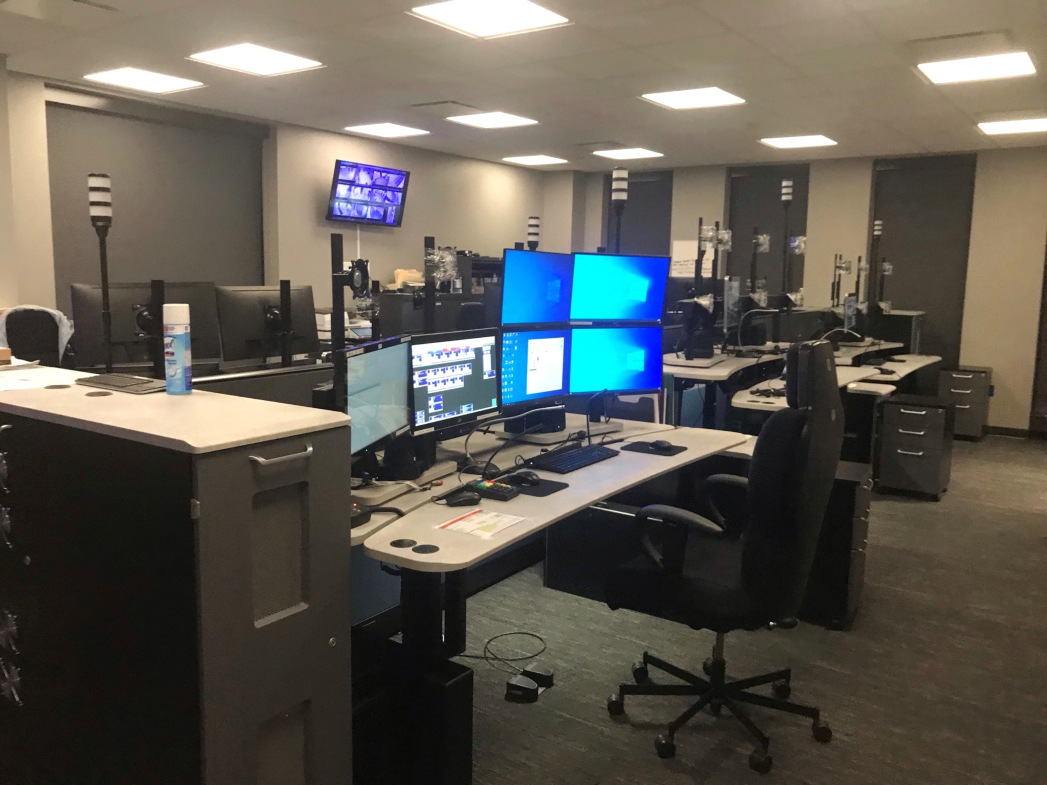 At the end I was sitting at a console with seven monitors, one main keyboard, and three mice. On an average night we have 8-9 browser tabs up (texting, recorder, EMS map, and so on), the phone board, the radio board with its 27 channels on five tabs, and, of course, the Computer Aided Dispatch program.