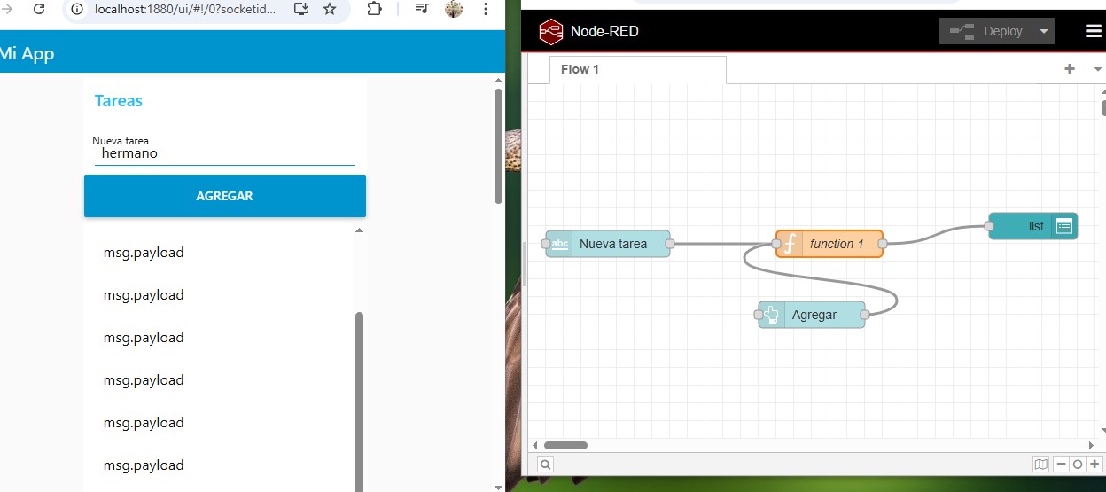 Aprendí los conceptos básicos de Node-RED, como conectar nodos, crear un flujo simple y usar una función para guardar tareas en una lista
