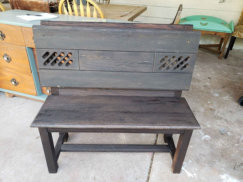 I am super proud of this bench because I built it myself from some scrap wood I found! Then I stained it with a dark Jacobean Brown!