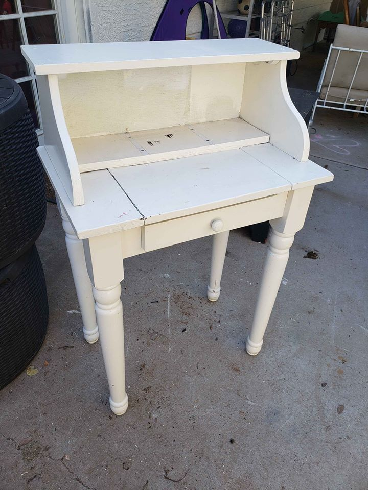 Last but not least is this little white desk. When I found it, it was in pretty rough shape. I think I am still going to try an interesting patina on it, because I think it looks a little plain, but it is cute as-is too, and I can't charge too much if I end up putting a whole lot more work into it!