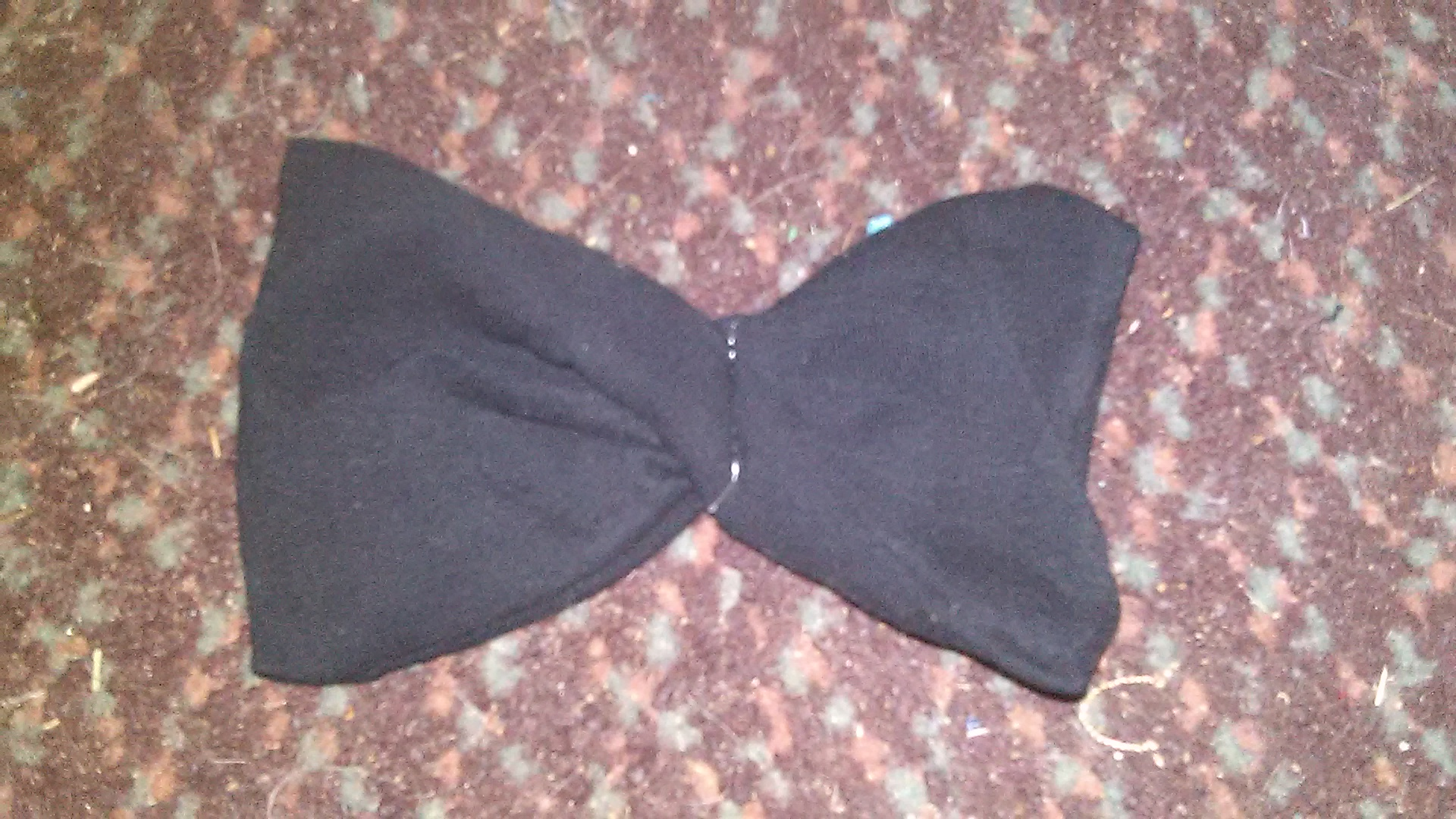 A bow that is roughly 4 ½ inches (11½ cm) long and 3 inches (7½ cm) at the widest point(I made one from the bottom of an old pair of black leggings).