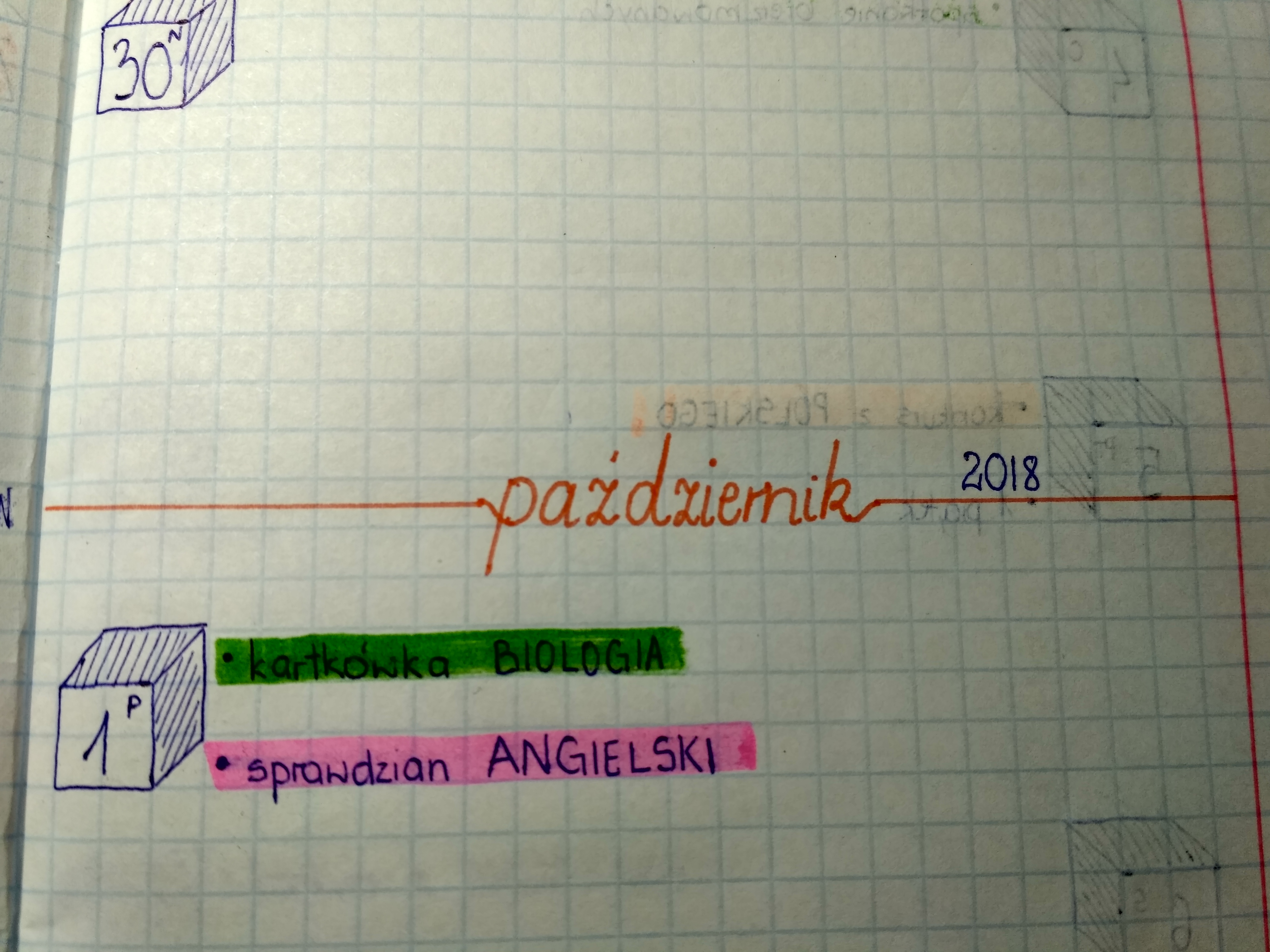 Otwórz zeszyt na stronie od której zaczniesz, weź długopis i narysuj sześcianik, aby zmieścić w nim datę i dzień tygodnia. Ja zrobiłam to tak ⬇