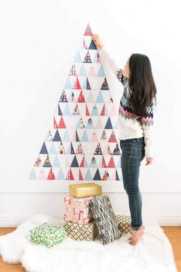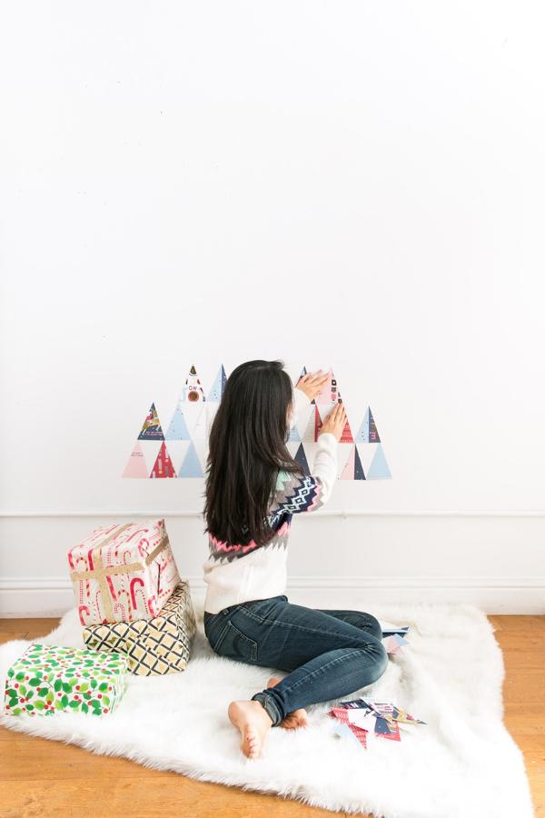 - Make a large triangle on the wall by attaching the triangulars piece. Starting with the widest part of the triangle (the bottom) and continue until it reaches the top of the triangle.