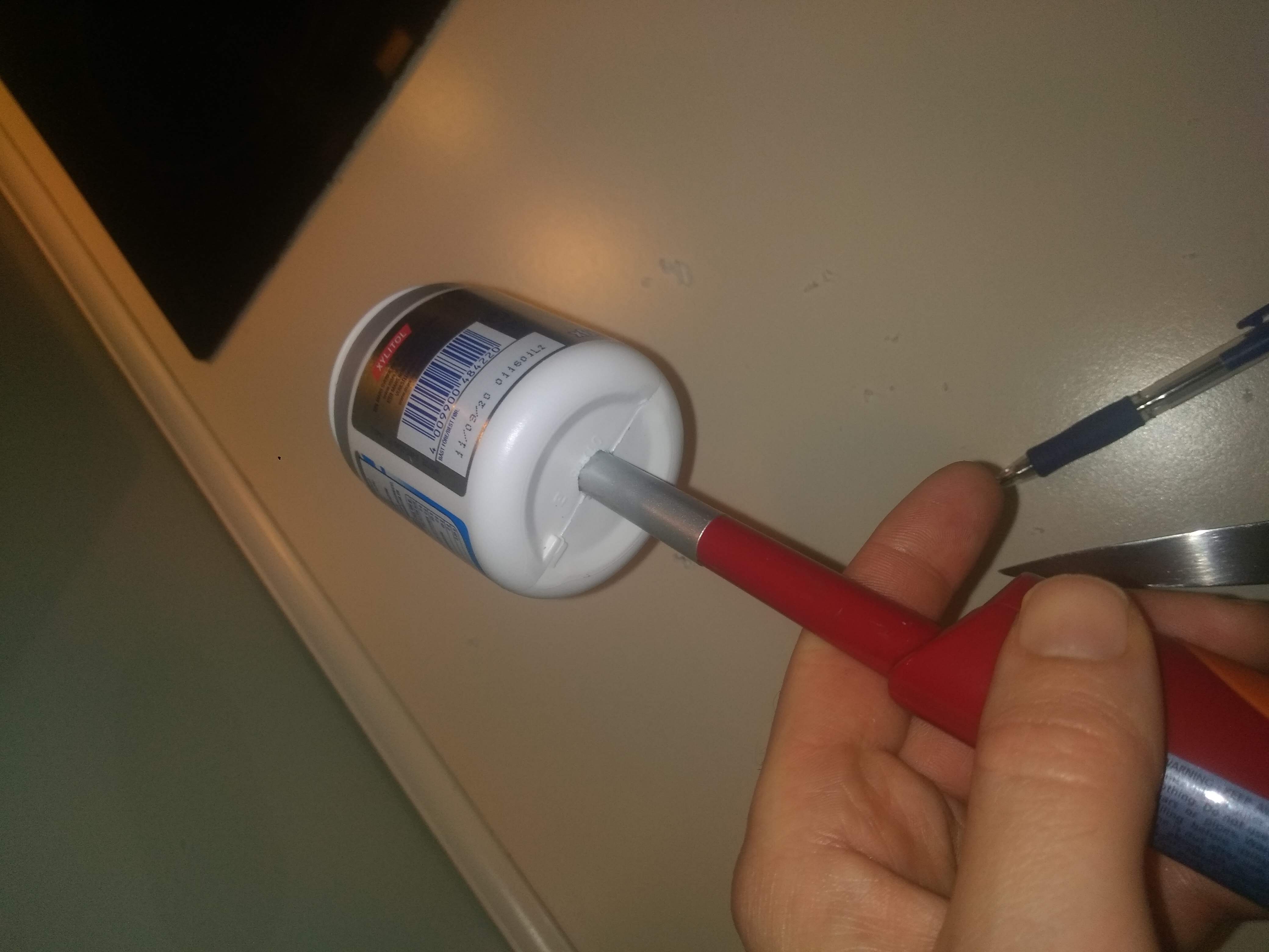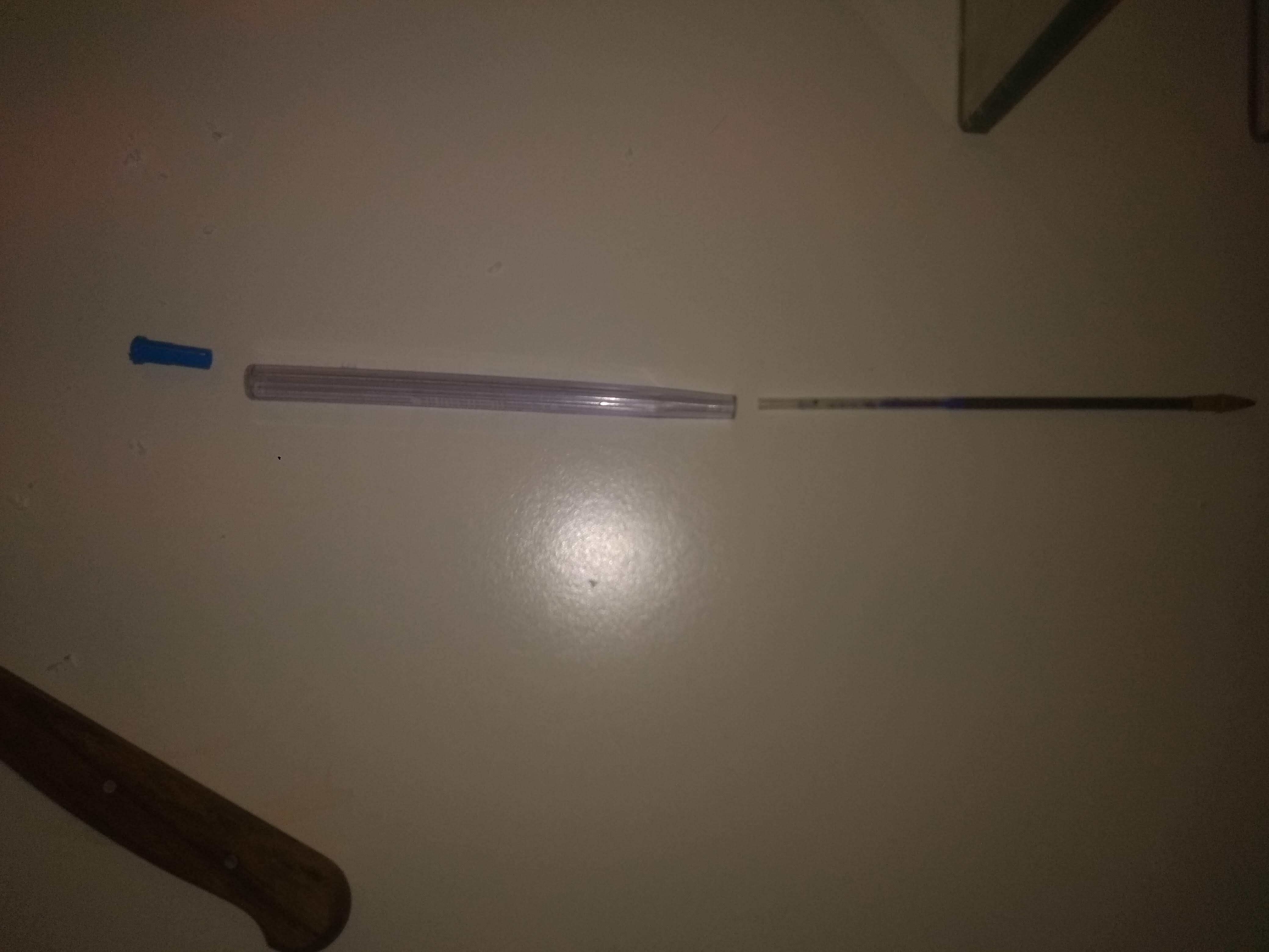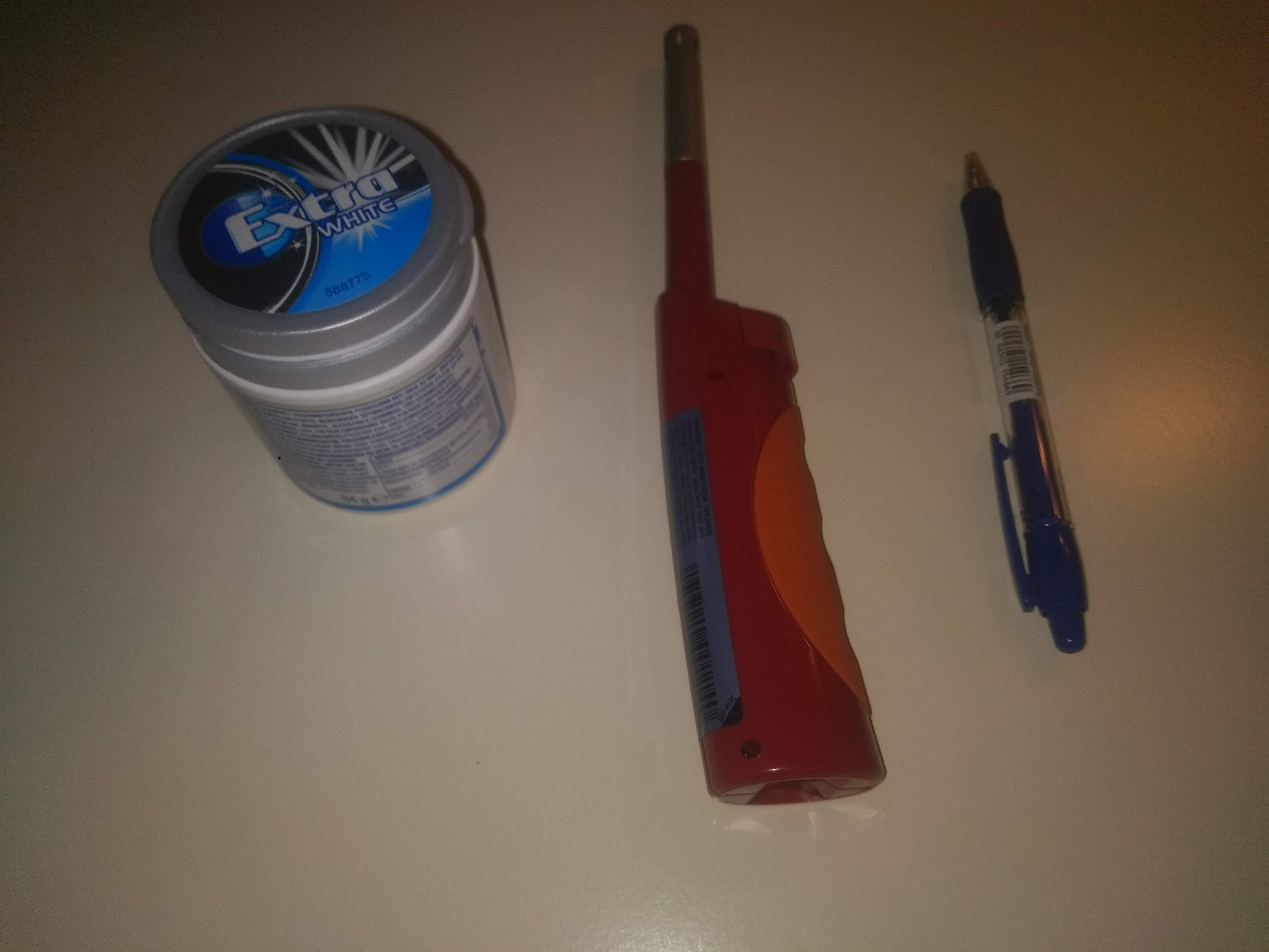 You need a pen (unmountable), a small vessel (prefferably plastic) with a lid on, and an electric lighter, the ones with piezo-electric crystal spark inside,