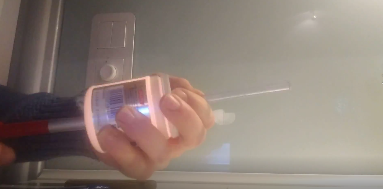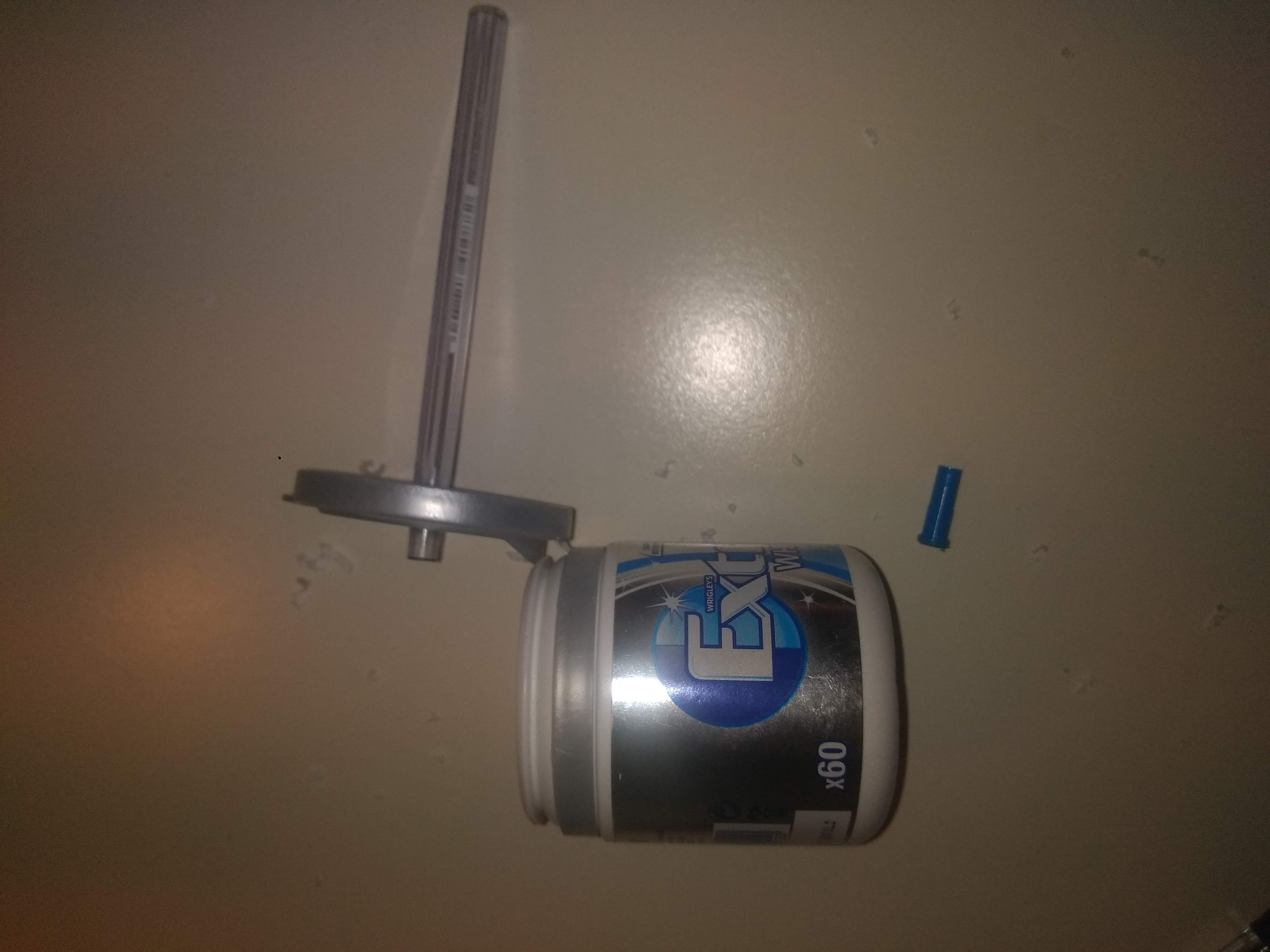Now your lighter is the gas-source and the igniter. First close the lid, then fill some projectile into the gun barrel, hold the vessel firmly and fill with some gas (press the lighter button half way through), the ignite! If the gas does not ignite you have eiter too much or too little gas inside the vessel. You just have to do a couple of trial and error to find the right amount of gas. If you get the mixture just right you will end up with something like this: