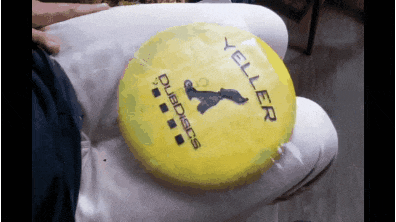 After adding a little clear coat to the edges of the vinyl decals - for extra durability - the Yeller golf disc was ready to fly.