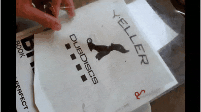 - The vinyl design on the transfer paper is then transferred to the blank golf disc