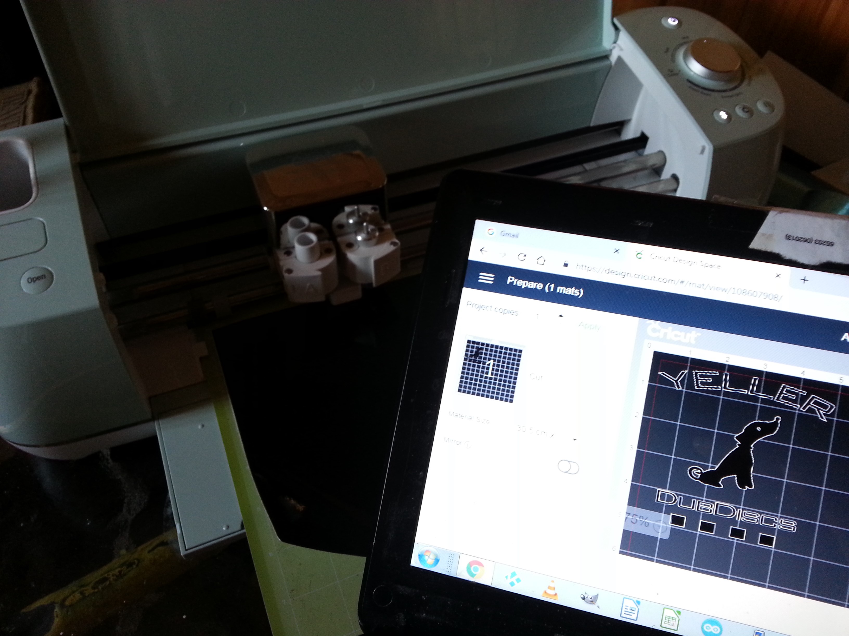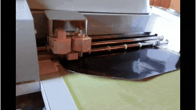 - After loading the vinyl sheet and sending the design to the Cricut, it cuts the vinyl design