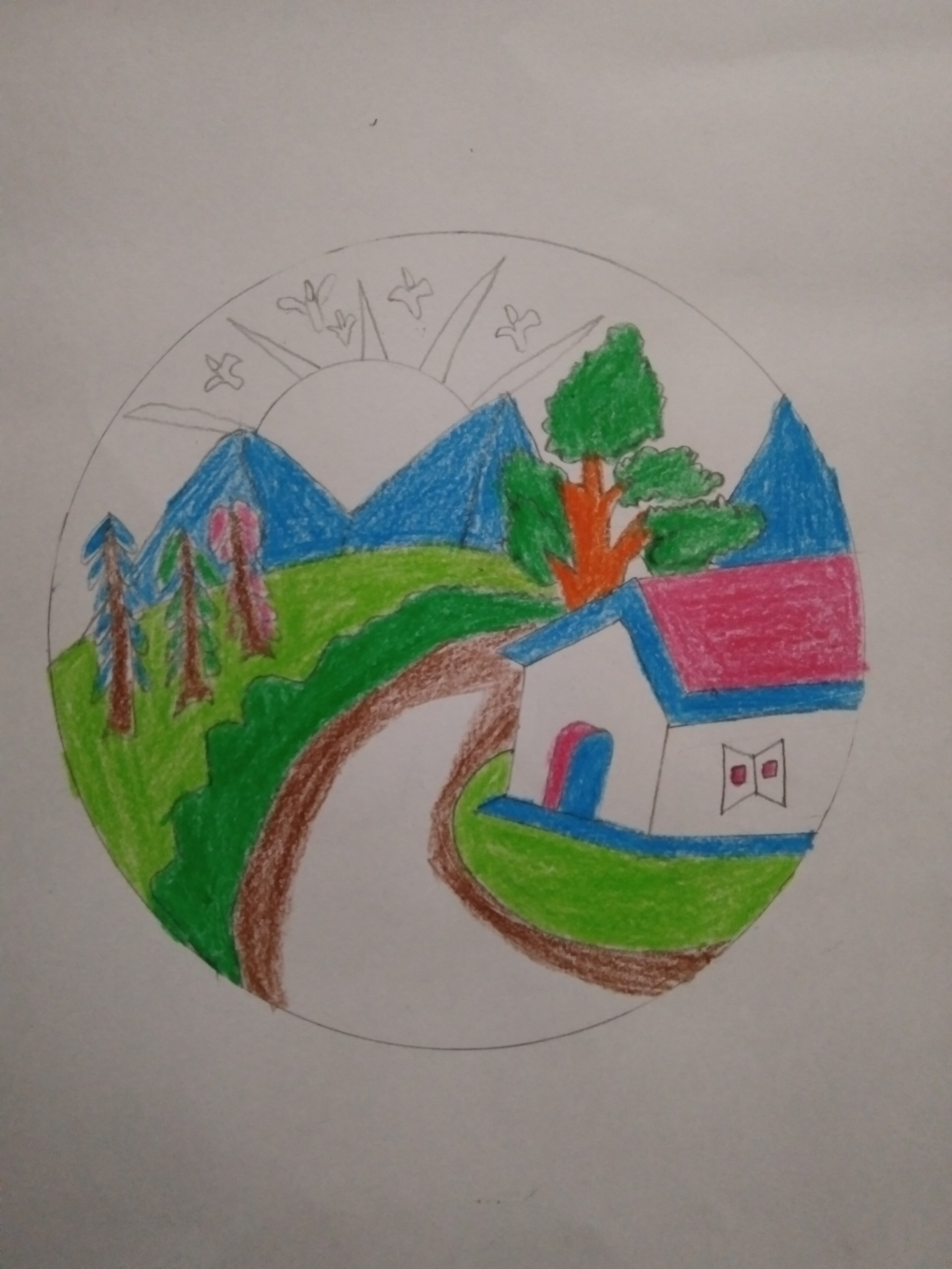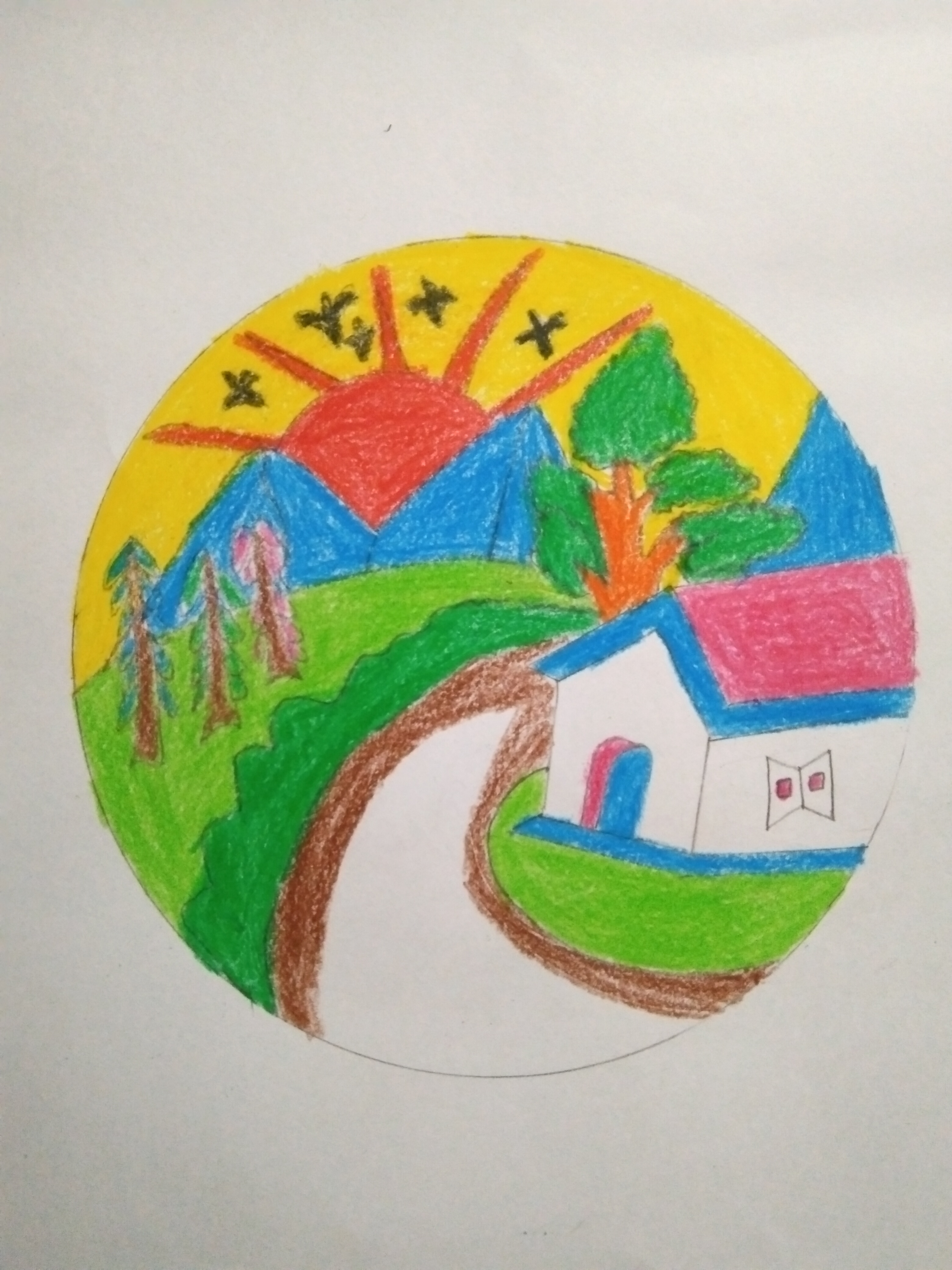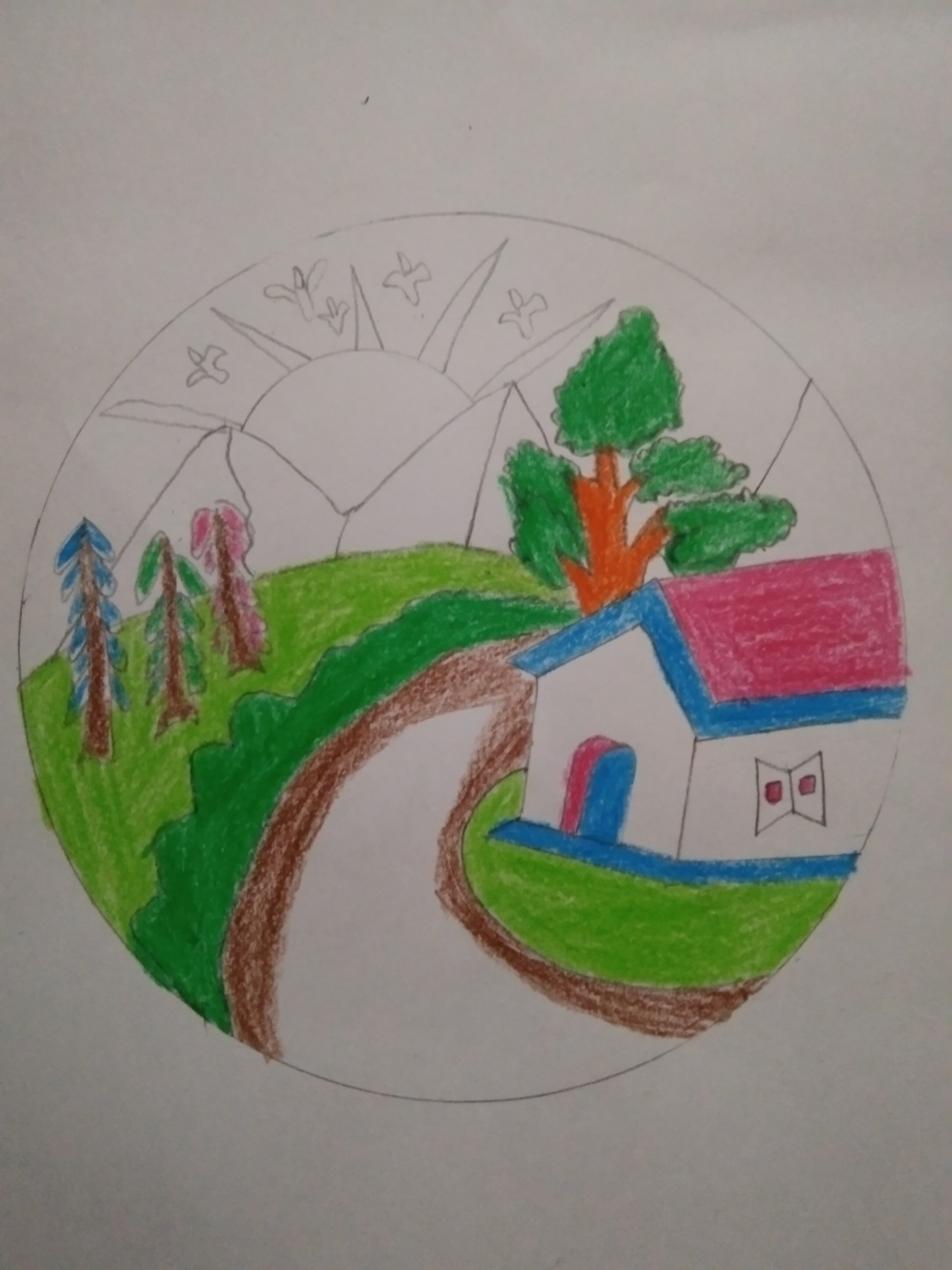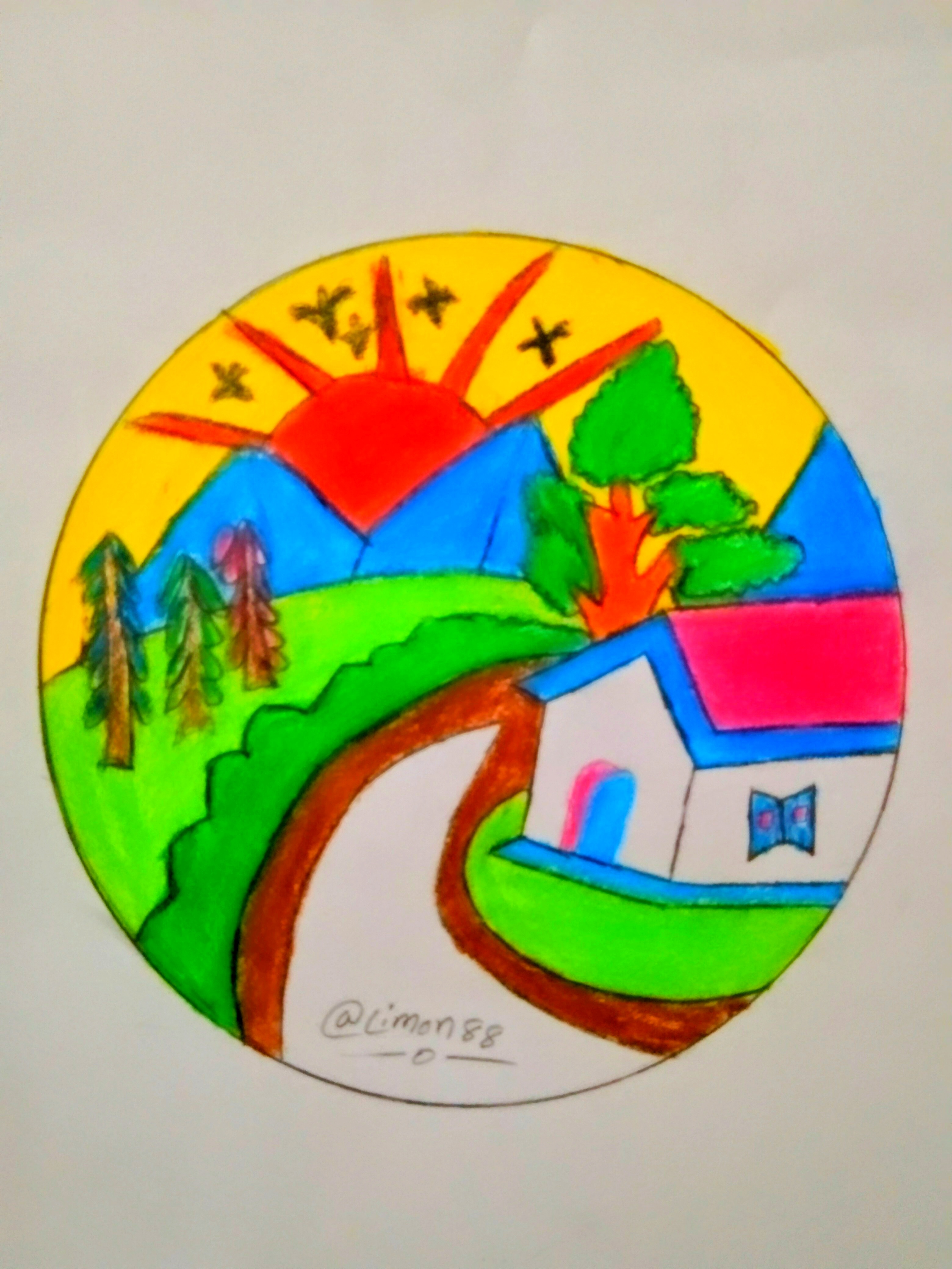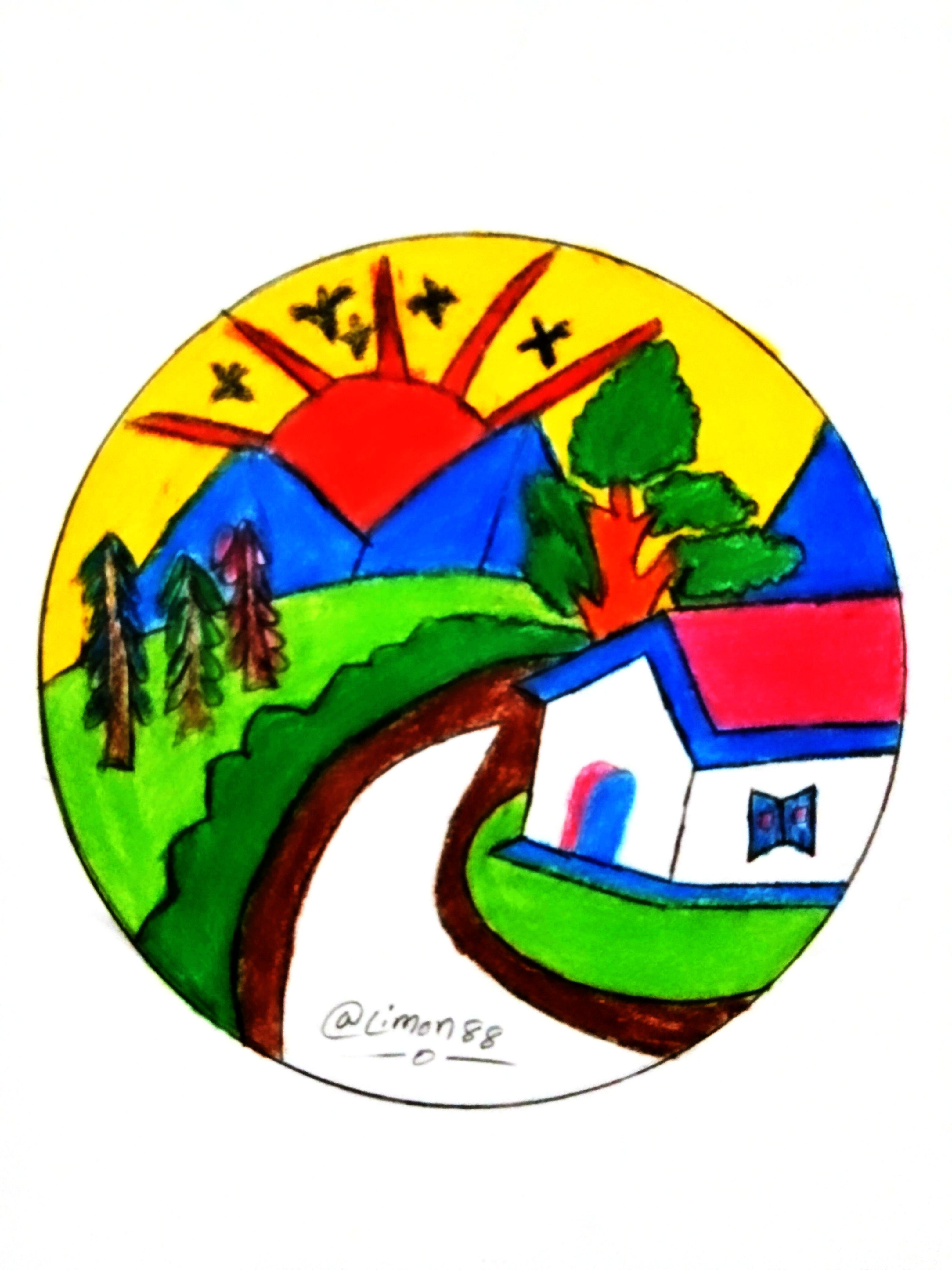 DIY projects:- রং পেন্সিল দিয়ে প্রকৃতির দৃশ্য অংকন।