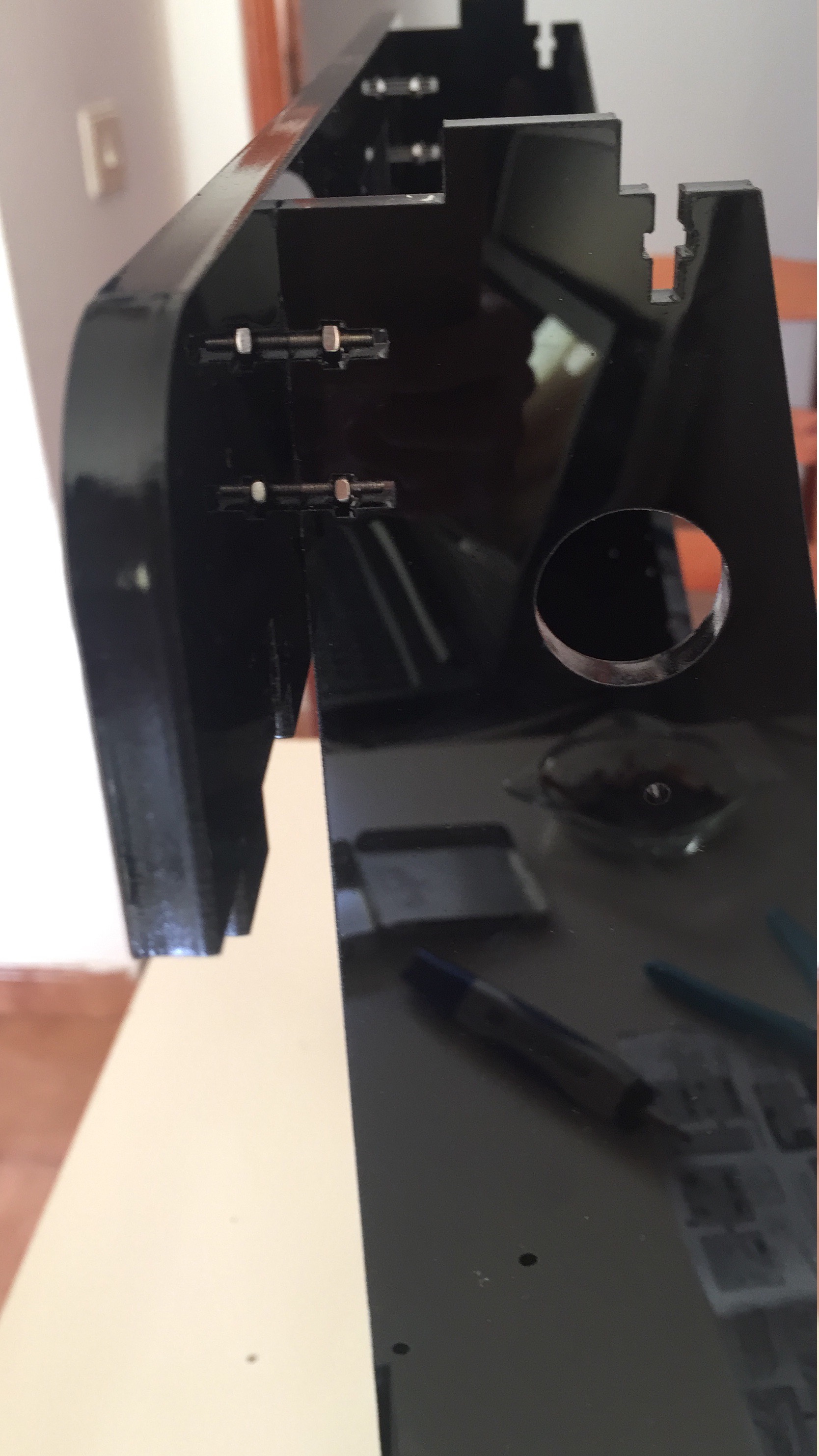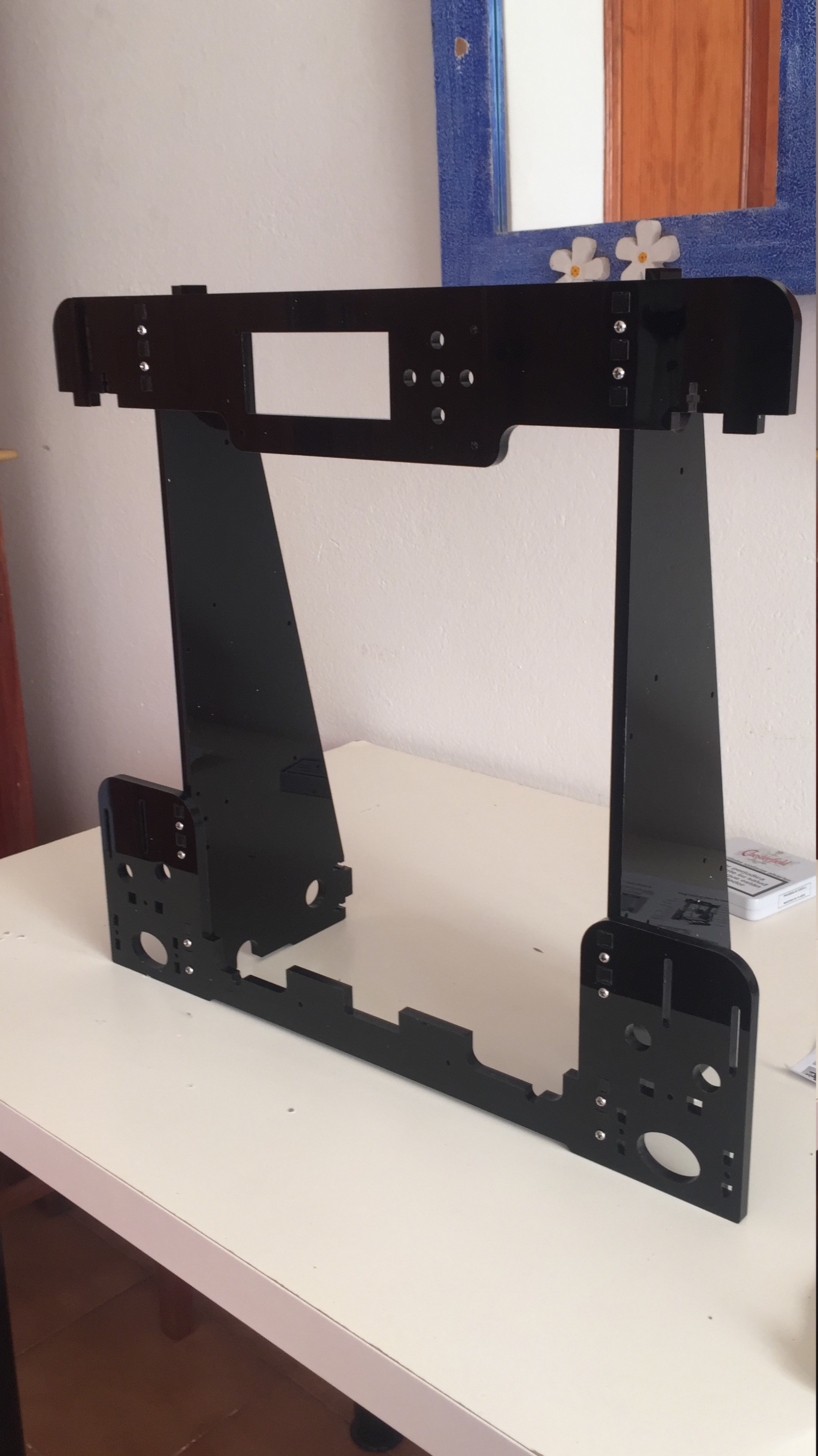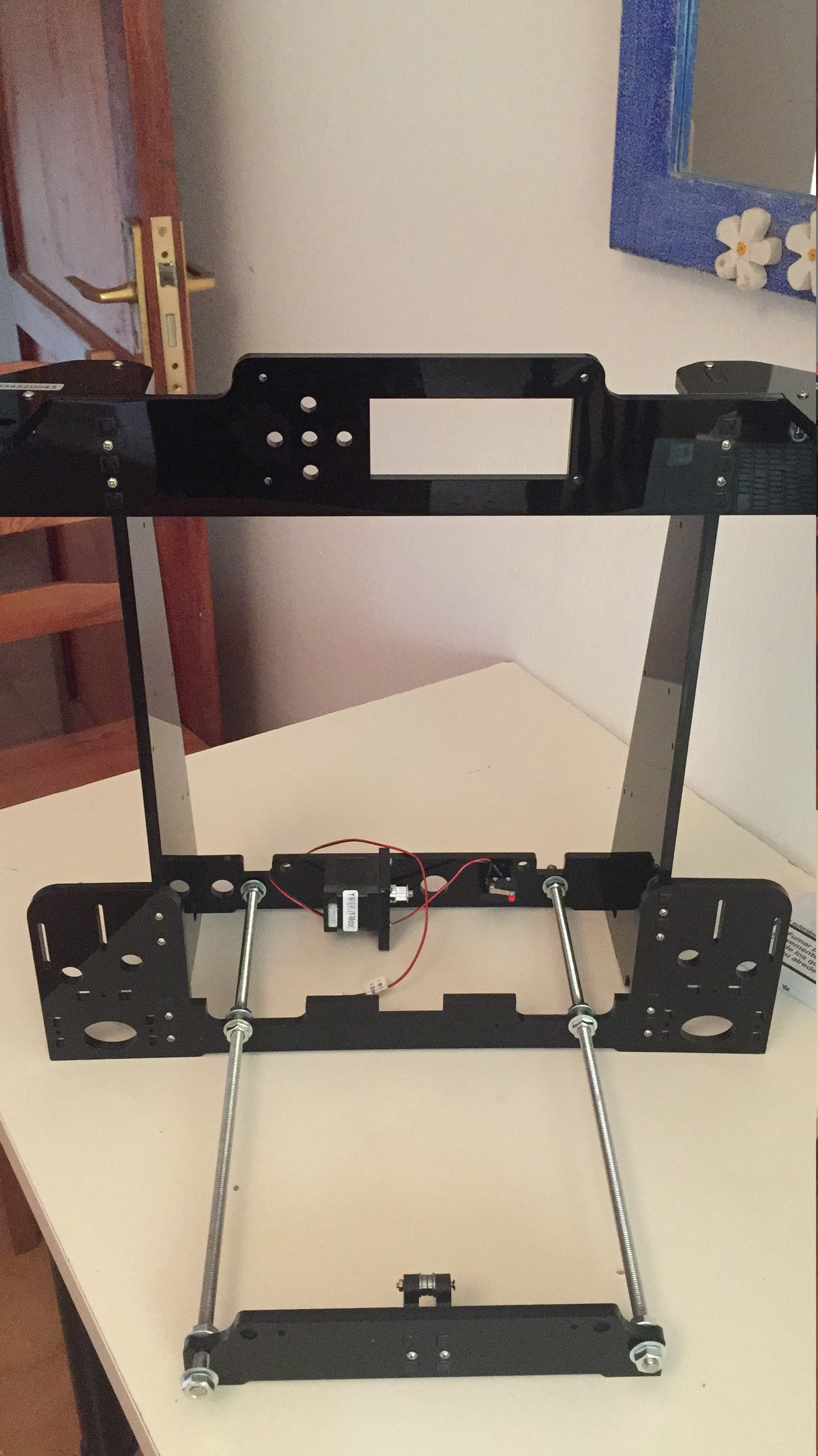 Empiezo montando el soporte de los componentes mecánicos y electrónicos y debo decir que la parte más complicada fue colocar los tornillos con las tuercas en ranuras tan pequeñas e inaccesibles para mis dedos que tuve que usar una pinza de cejas como ayuda. Y había tantos tornillos y tuercas, créanme, nunca se acababan. Y a veces también tuve que desmontar y volver a armar porque había puesto la pieza al revés.