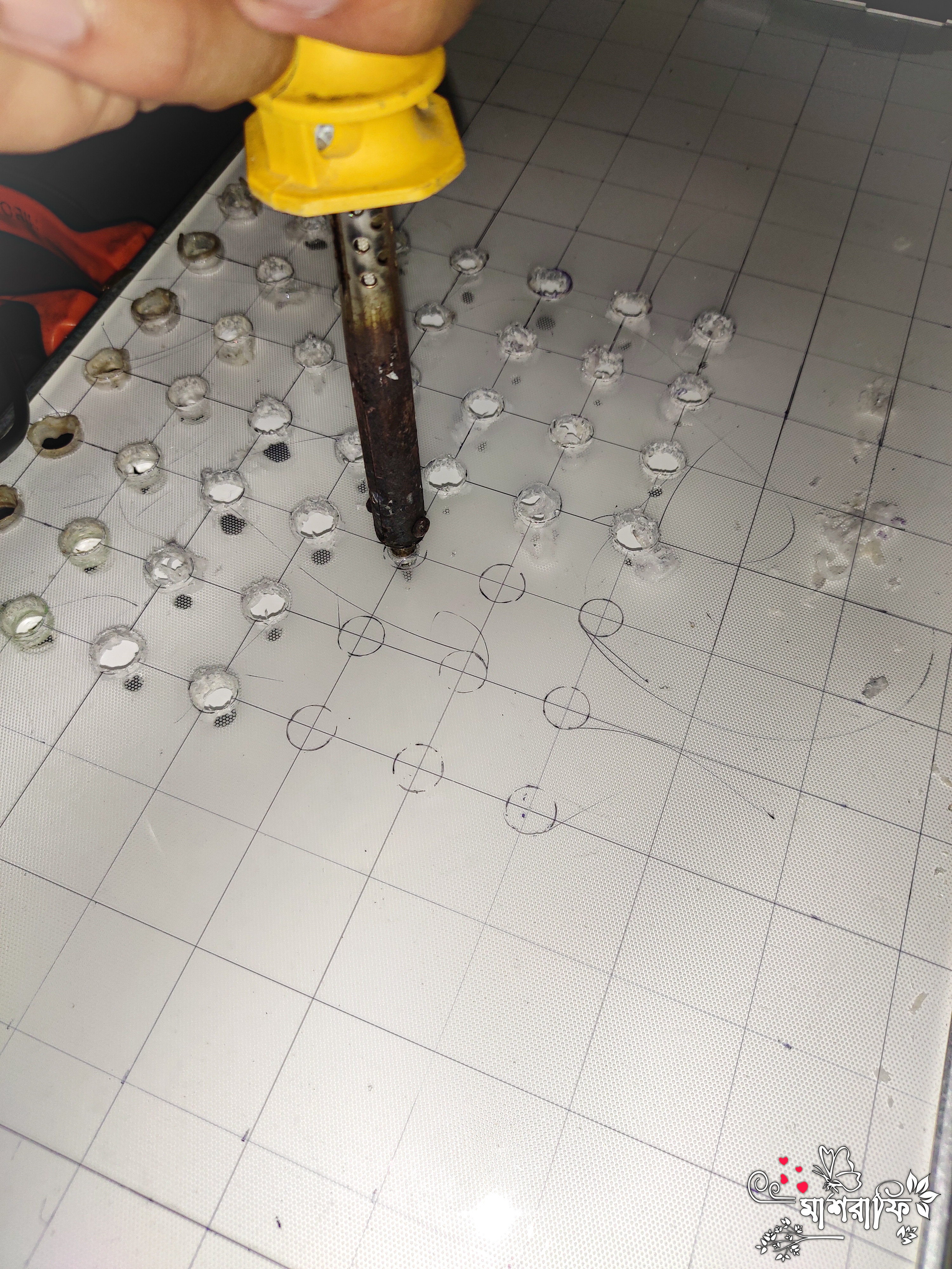- সোল্ডারিং আয়রন দিয়ে এভাবে ৪৯ টি ফুটো করে নিবো।