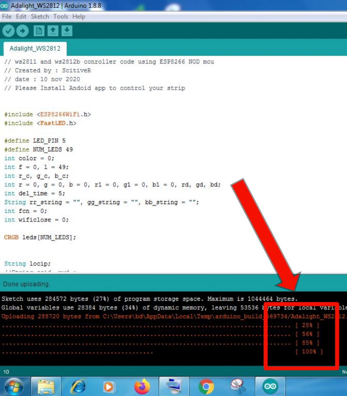 - আপলোড শুরু হলে esp তে থাকা নীল লাইটটি ব্লিং করতে থাকবে।