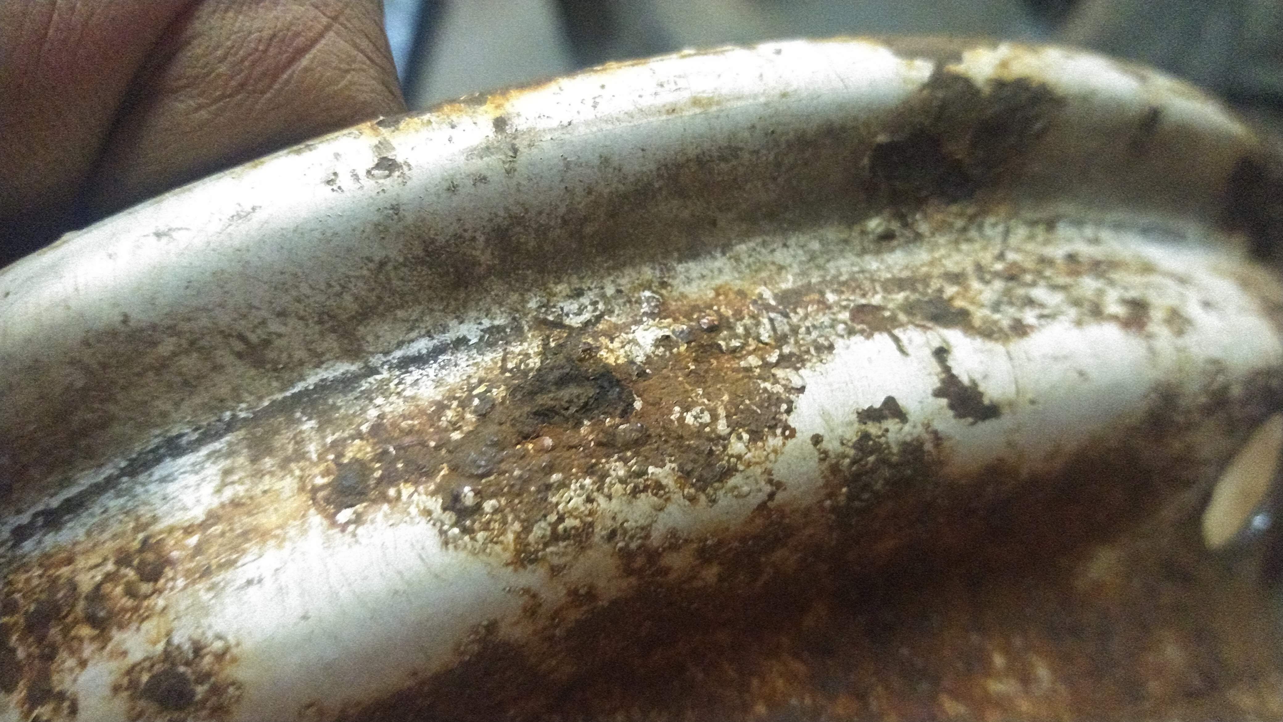 Here's the bead sealing area on the rim. This is the same as the valve stem, in my experience it can have some imperfections from rust pitting or tool marks, but all that loose paint, rust scale and any dirt needs to come off or you won't get a good seal. This part was cleaned up with a drill-mounted wire wheel.