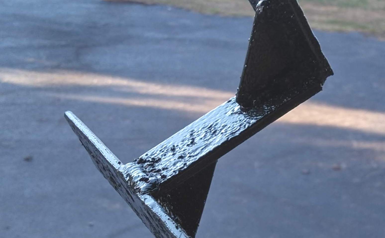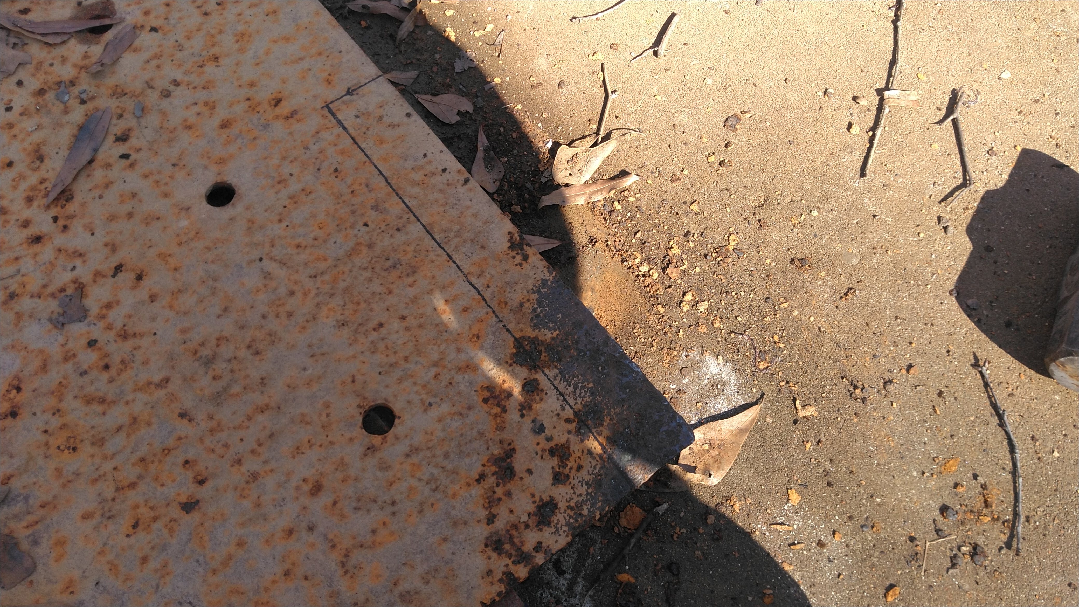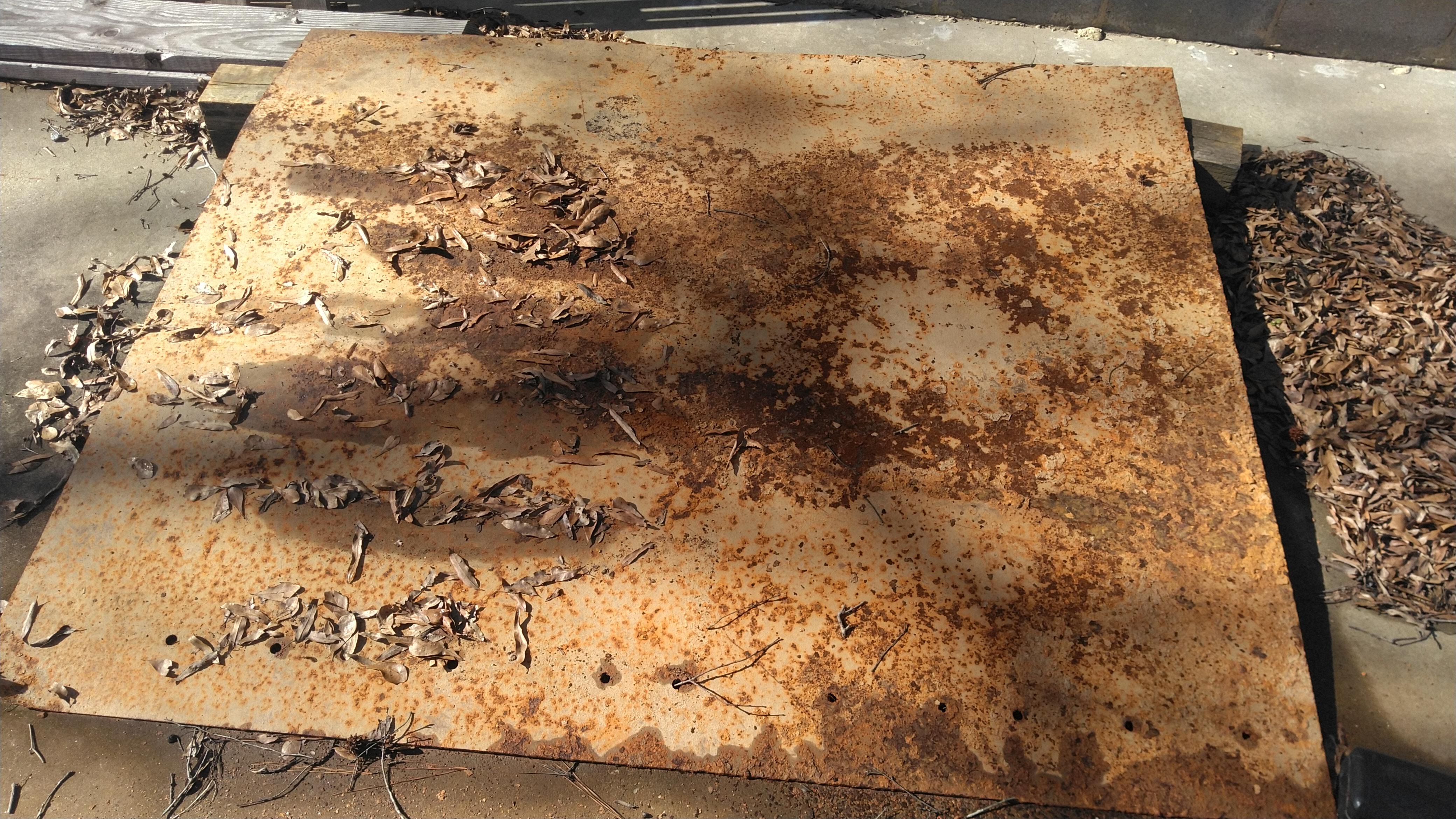 Lucky for me the previous owner of this property happened to have been a welder/fabricator and I found this piece of 3/16" steel plate laying in the mud when we bought the house. It was quite the workout to move it over to this concrete pad here, but now it's going to good use already and it'll be the material for that little hitch.