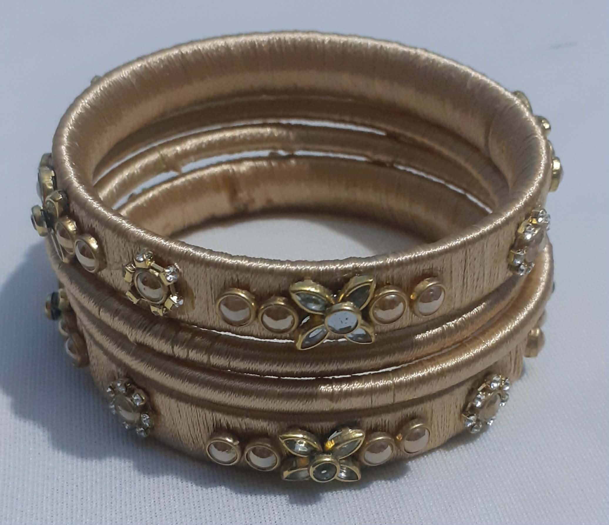 বন্ধুরা,বেশ অনেক দিন পর আজ আমার নিজের জন্য চুড়ি বানালাম। বেশ চলছে এই চুড়িগুলো। বিভিন্ন প্রতিষ্ঠান এই ধরনের চুড়ি বানানোর কোর্স করান। সেই কোর্স এ চুড়ি বানানো শেখে অনেকই আজকাল অনলাইনে চুড়ি বানিয়ে সেল করেন। অনলাইনে এই হাতে বানানো চুড়ির একটা ব্যবসা দাঁড়িয়ে গেছে।ঘরে বসেই অনেক মেয়ে সংসার দেখা শোনা করেও এই ব্যবসা চালিয়ে যাচ্ছে। যা আমাদের অর্থনীতিতেও কিছুটা হলেও অবদান রাখছে। এবং মেয়েরা তাদের নিজেদের খরচ নিজেরাই চালাতে ্পারছেন। বেশ নতুন নতুন ডিজাইনের চুড়ি সেল করা হয় অনলাইনে। আর কাস্টমাইজ করেও বিক্রি হয় এই সকল চুড়ি। তবে আমি কোন কোর্স করিনি এই চুড়ি বানানোর। ইউটিউব থেকে দেখে শিখেছি। সাথে নিজের ক্রিয়েটিভিটি যুক্ত করেছি। অনেক ডিজেইনের চুড়ি আমি বানিয়েছি। আত্মীয় স্বজনকে গিফট করেছি। সকলেই বেশ পছন্দ করেছে এই সকল চুড়ির ডিজাইন। অনেককে আবার তাদের ড্রেস এর সাথে মেচিং করে বানিয়ে দিয়েছি চুড়ির সেট। তবে আমার জন্য কোন চুড়ি বানায়নি। এই প্রথম নিজের জন্য চুড়ি বানালাম। ঈদের ড্রেস এর সাথে মিলিয়ে।কাপড়, সুতা,ক্লে ব্যবহার করে এই সকল হ্যান্ড মেইড চুড়ি বানানো হয় । তবে আমি সিল্ক এর সুতা ও বিভিন্ন ধরনের কুন্দল ও সুতা ব্যবহার করে এই চুড়ি বানিয়েছি। আমি কালো ও সোনালী রং এর দুই সেট চুড়ি বানিয়েছি আমার ঈদের ড্রেস এর সাথে মেচিং করে। অনেক চিন্তা ভাবনার পর এই ডিজাইন এর চুড়ির সেট বানালাম। বানানোর পর বেশ সুন্দর লাগছিলো দেখতে। বেশ সুন্দর ফিনিশিং হয়েছে চুড়ির সেট দু'টোর।আর ড্রেস এর সাথেও বেশ মেচিং হয়েছে। যদিও বানাতে বেশ সময় লেগেছে। চুড়ির বেজ এর উপর সুতা প্যাচিয়ে নিয়ে কুন্দল এর ডিজাইনটি করতে হয়েছে। কুন্দল বসানোর কারনে বেশ সুন্দর লাগছে। আপনাদের কেমন লেগছে কমেন্ট করে জানাতে পারেন। আশাকরি আপনাদেরও ভালো লেগেছে। এখন অপেক্ষায় আছি ঈদের জন্য । ড্রেস এর সাথে মেচিং করে এই চুড়ি গুলো পরার।