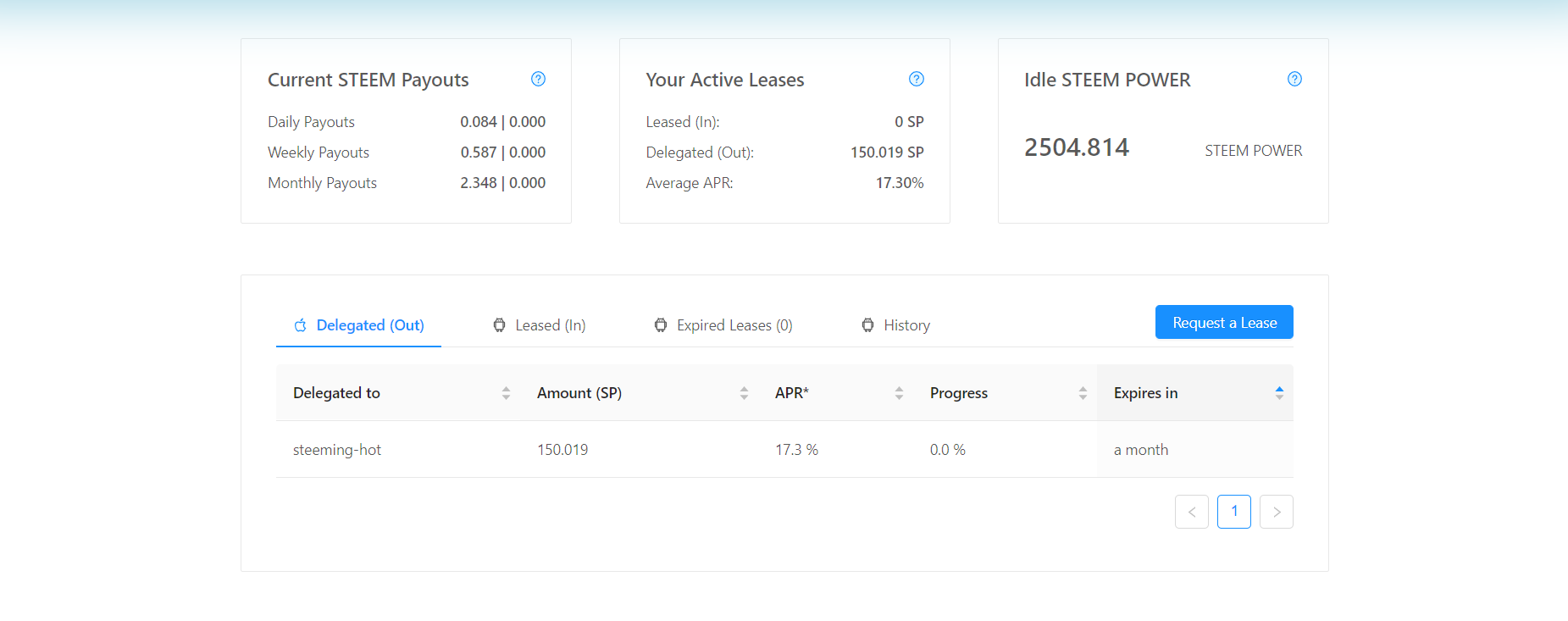 The big benefit of leases is that both is priced in STEEM and so price fluctuations don't affect your apr at all. And you can feel good about giving a few noobies sonme RC ;)