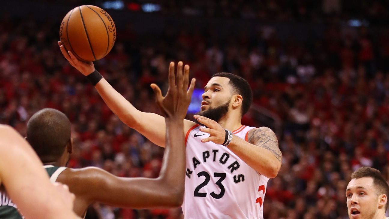 A day after the birth of his second child, Fred VanVleet broke out of his shooting slump and had his best game of the playoffs, scoring 13 points off the bench to help the Raptors rout the Bucks 120-102 in Game 4.