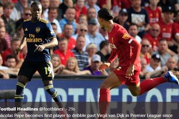 Rekor apik Virgil van Dijk di liga harus terputus oleh pemain termahal Arsenal, Nicolas Pepe, pada pertandingan pekan ketiga Liga Inggris.