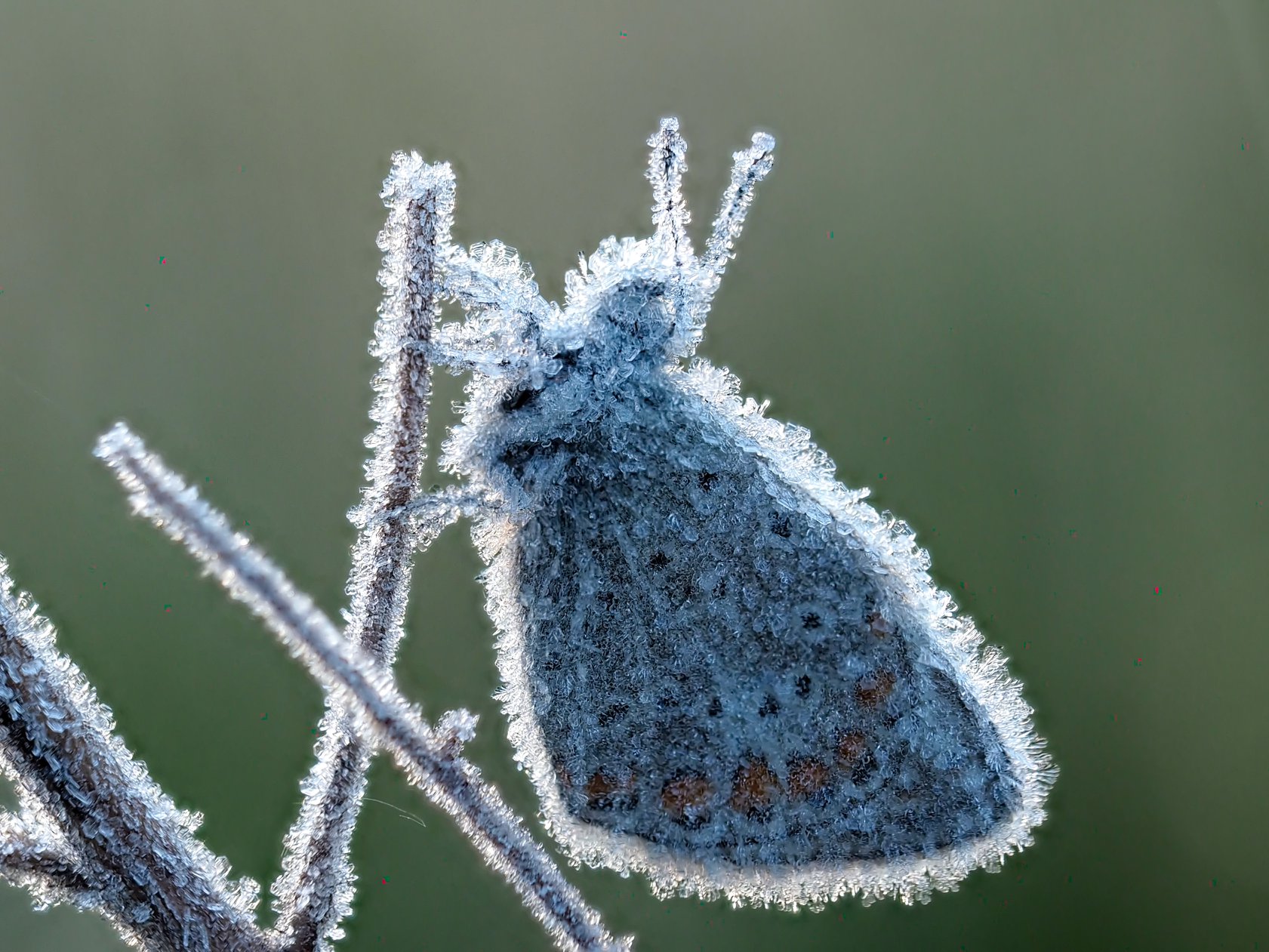 What incredible shots. I'm not sure if the little butterfly survived the frosty night.
