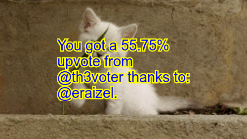 You got a 55.75% upvote from @th3voter thanks to: @eraizel!