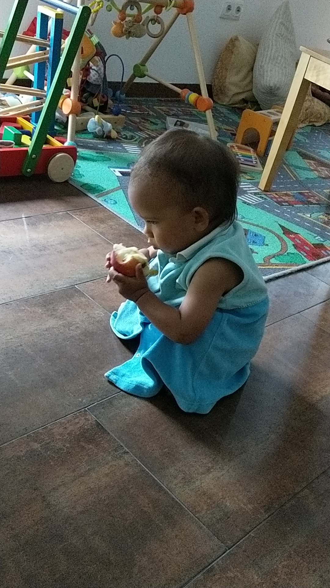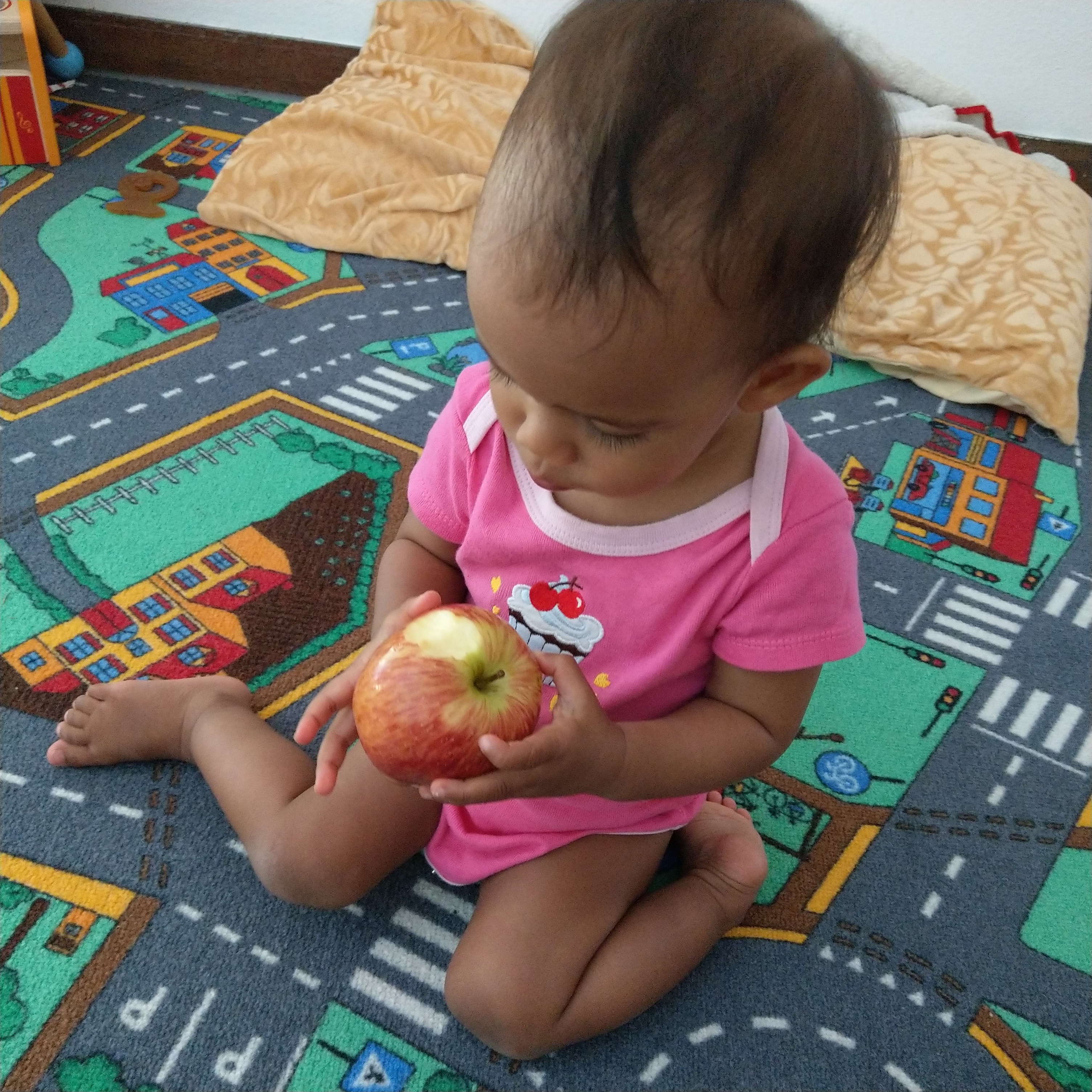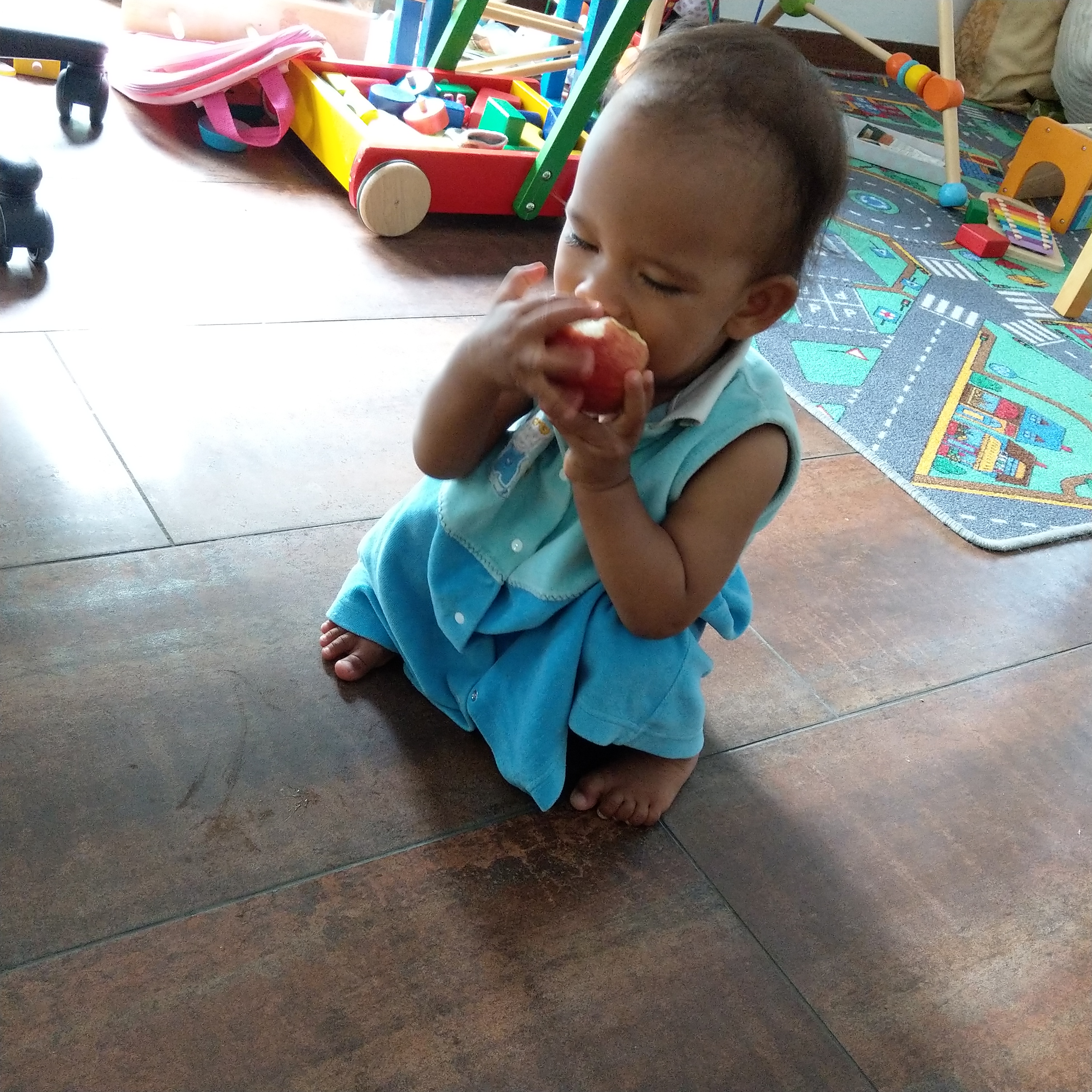 And despite only having 8 milkteeth, she can eat the whole apple. She loves fruit so much, she would be happy in Asia LOL.