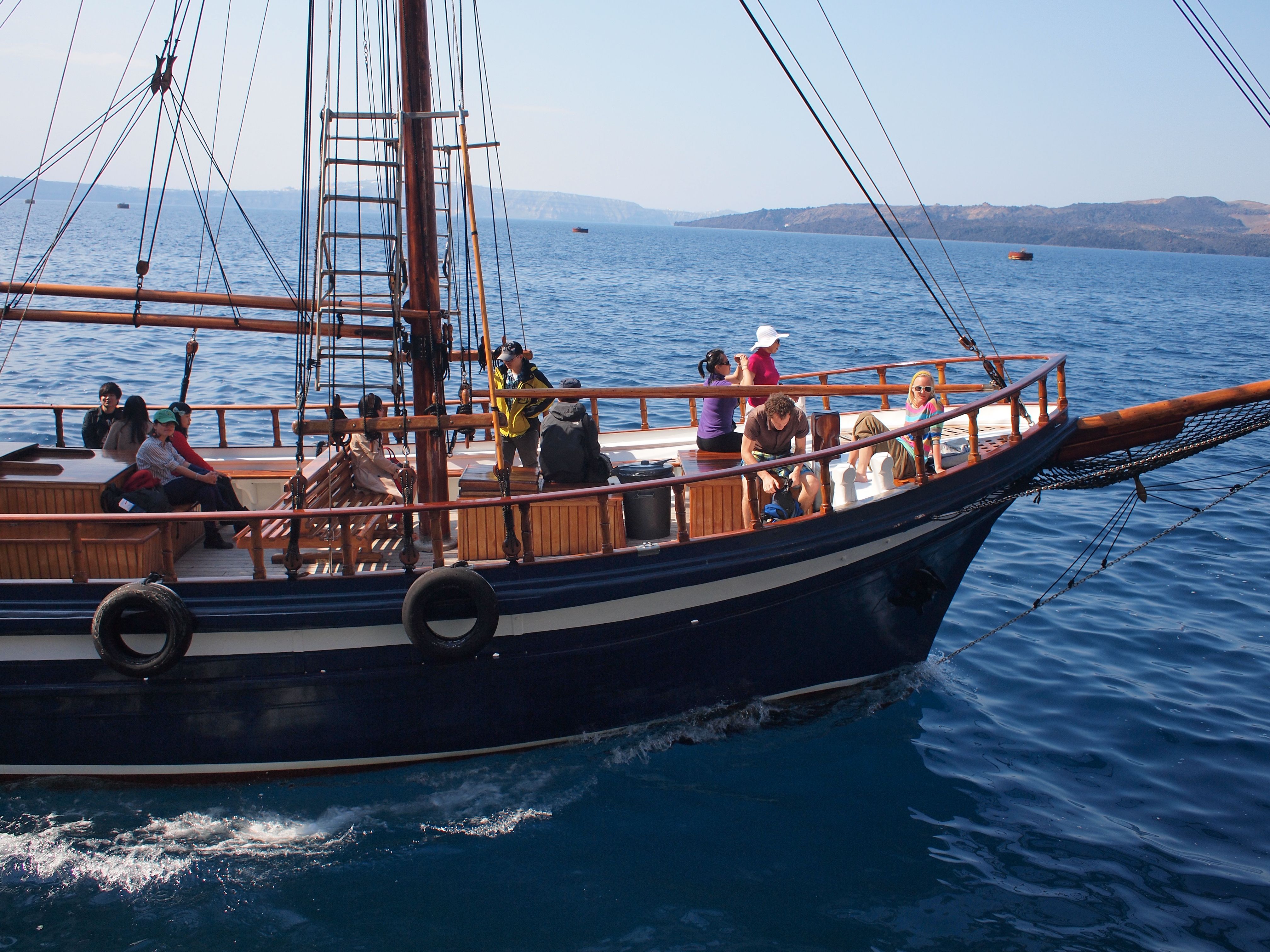 カマリ火山には、サントリーニ島のフィラという町から船で行くことが出来、所要時間はだいたい30分ほどです。
