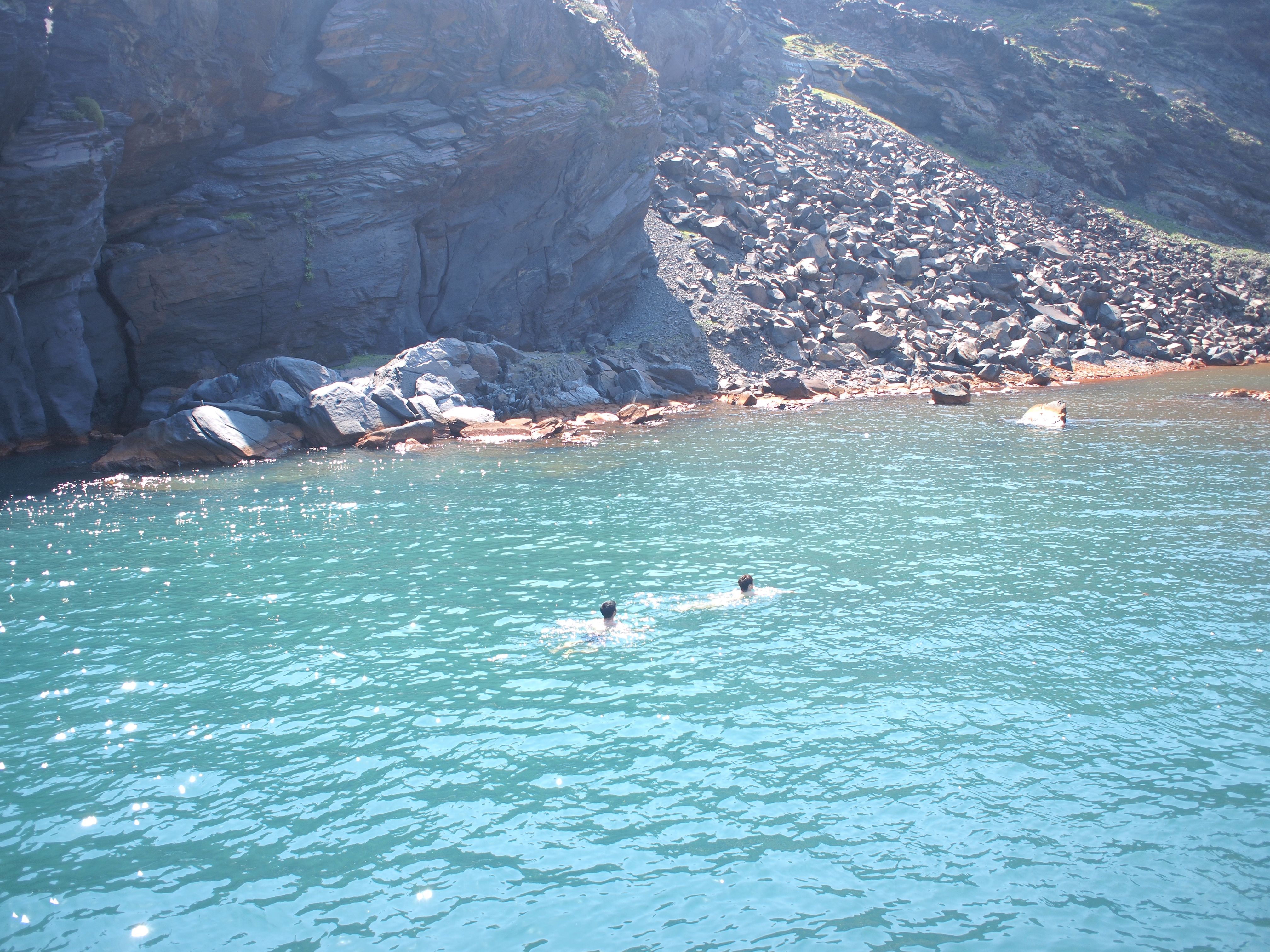 And then, we got on ship again and moved another place near volcano, and we dived sea to swim!
