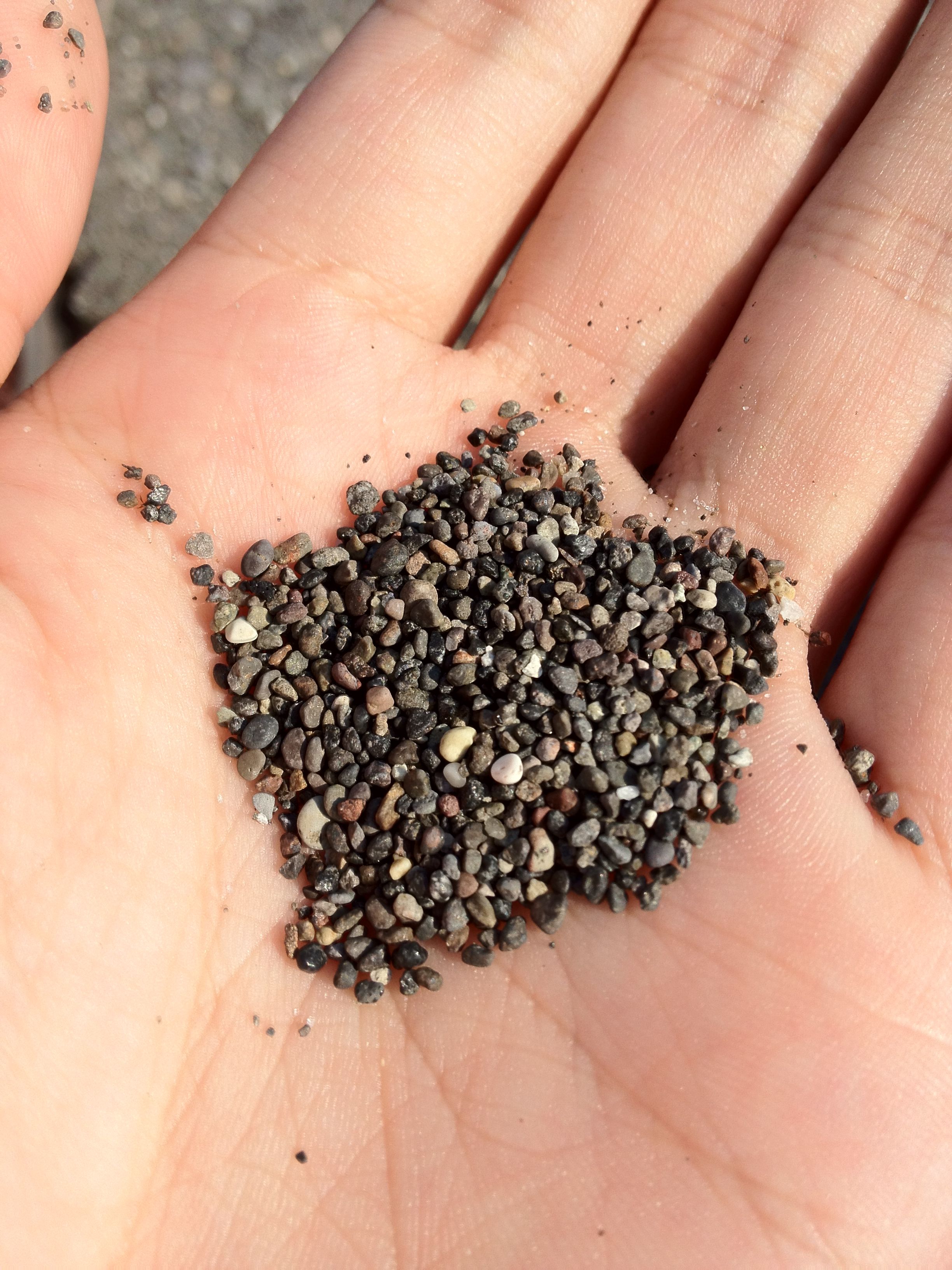ブラックビーチは、1つ1つの砂の色が黒くて砂浜全体がグレーっぽい色をしていました。