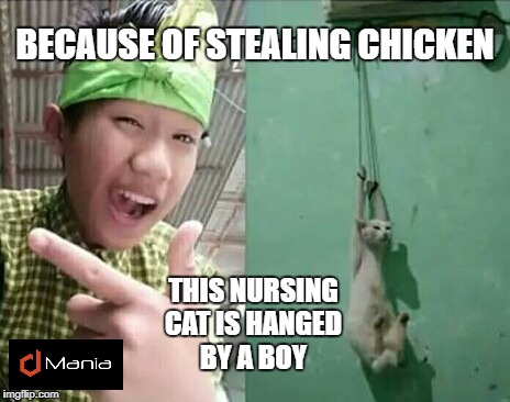 Because of stealing chiken, this nursing cat is hanged by a boydmanialol (36)in #dmania • 8 years ago View post on dMania #meme #funny