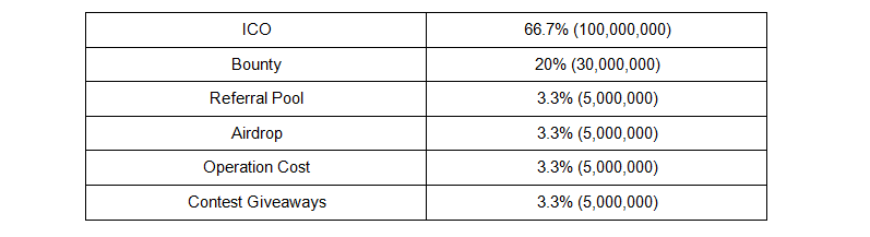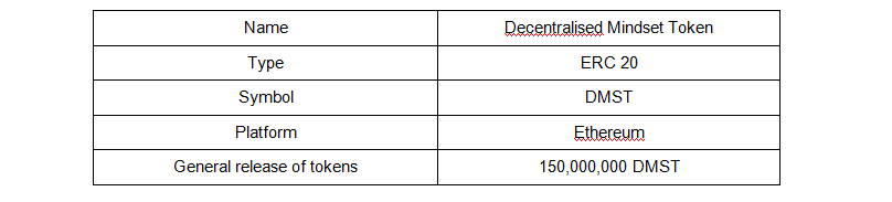 Total amount of tokens for Initial Coin Offering - 150,000,000 DMST