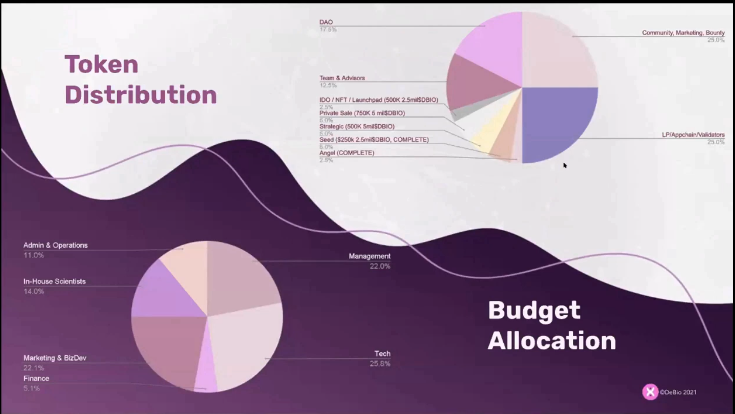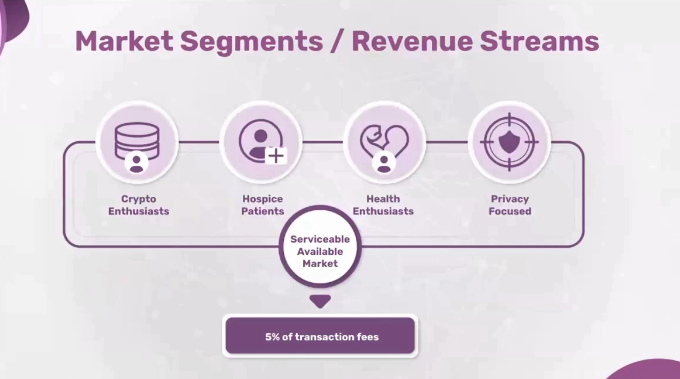 This is our serviceable available market, and we're only taking 5% of the transaction fees. This is coming from an estimated value of a global bioinformatics market size in 2021 of $13.7 billion from that 47% privacy centric data sovereignty People are $6.4 billion. Just taking 1% of this entire serviceable available market would yield less. This one we're taking only 5% of transaction fees, our token distribution, is shown on the top right.