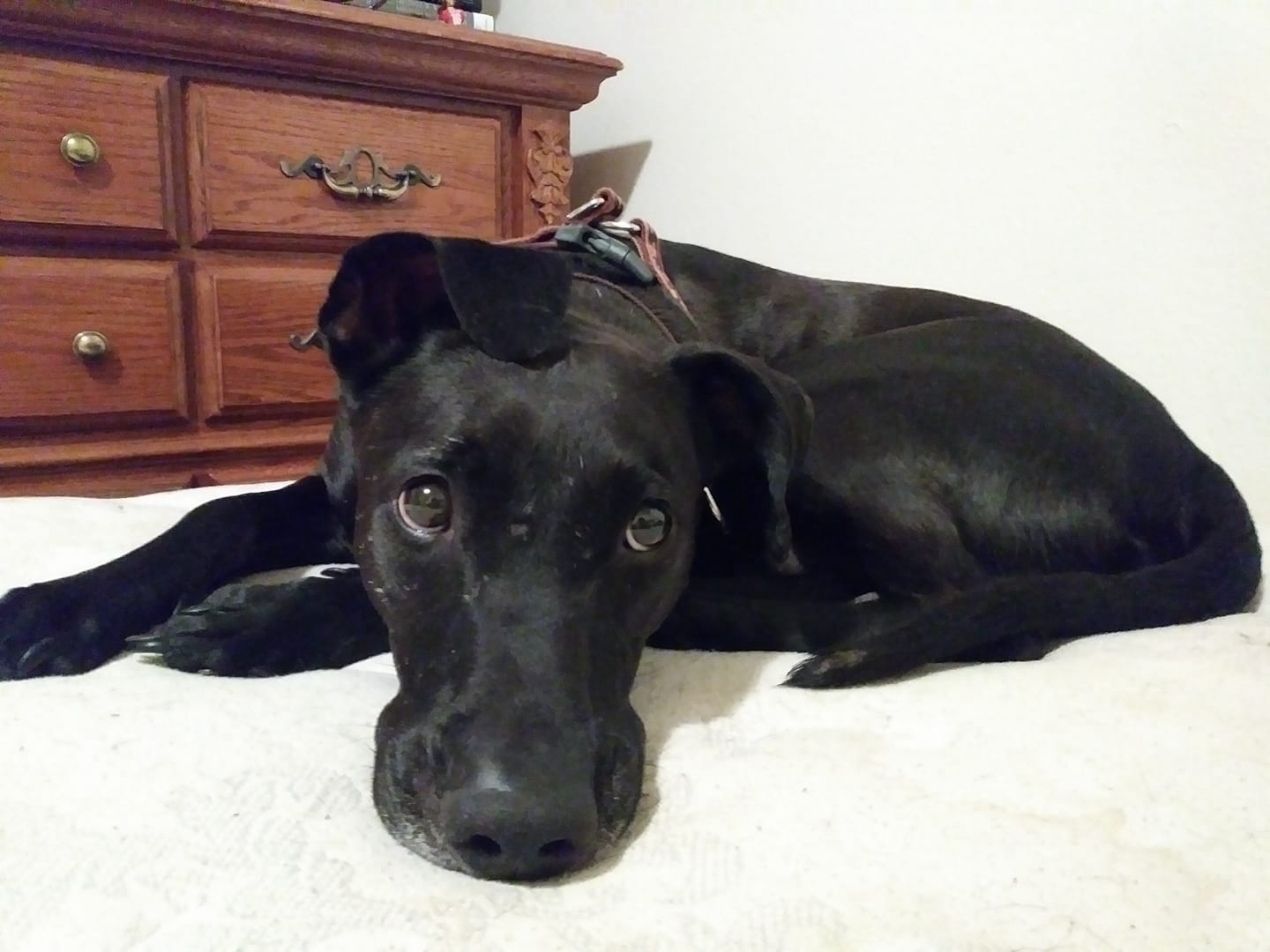 Mommy and daddy have been keeping my brother separate from me. I miss him. Mommy tried to let us sniff eachother, but my brother growled, and my mommy had to put him outside again... Why is he so mad at me... Time goes by, and one day... My brother leaves. My mommy leaves with him in a giant thing with wheels that moves, and when she came back, he was not with her... I miss him.
