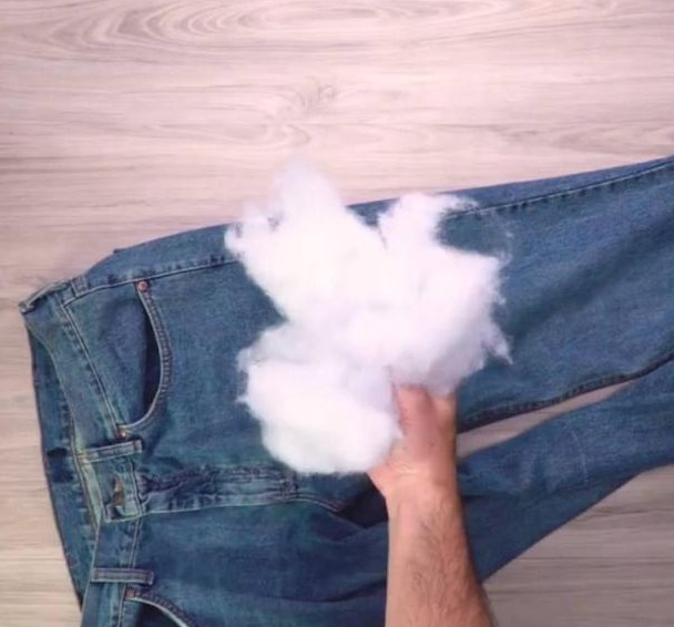Bring some cotton (plush in used toy) to the trousers.