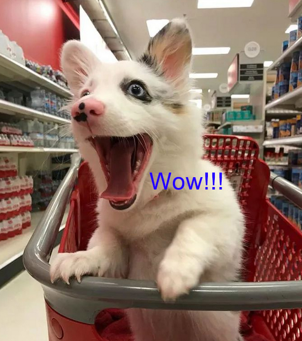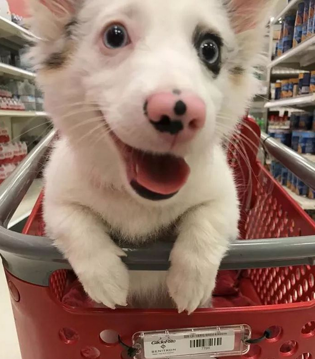 Lovely Pet#3 Go to the supermarket with a small Koji for the first time , it excited: Wow! Can I bite something here?